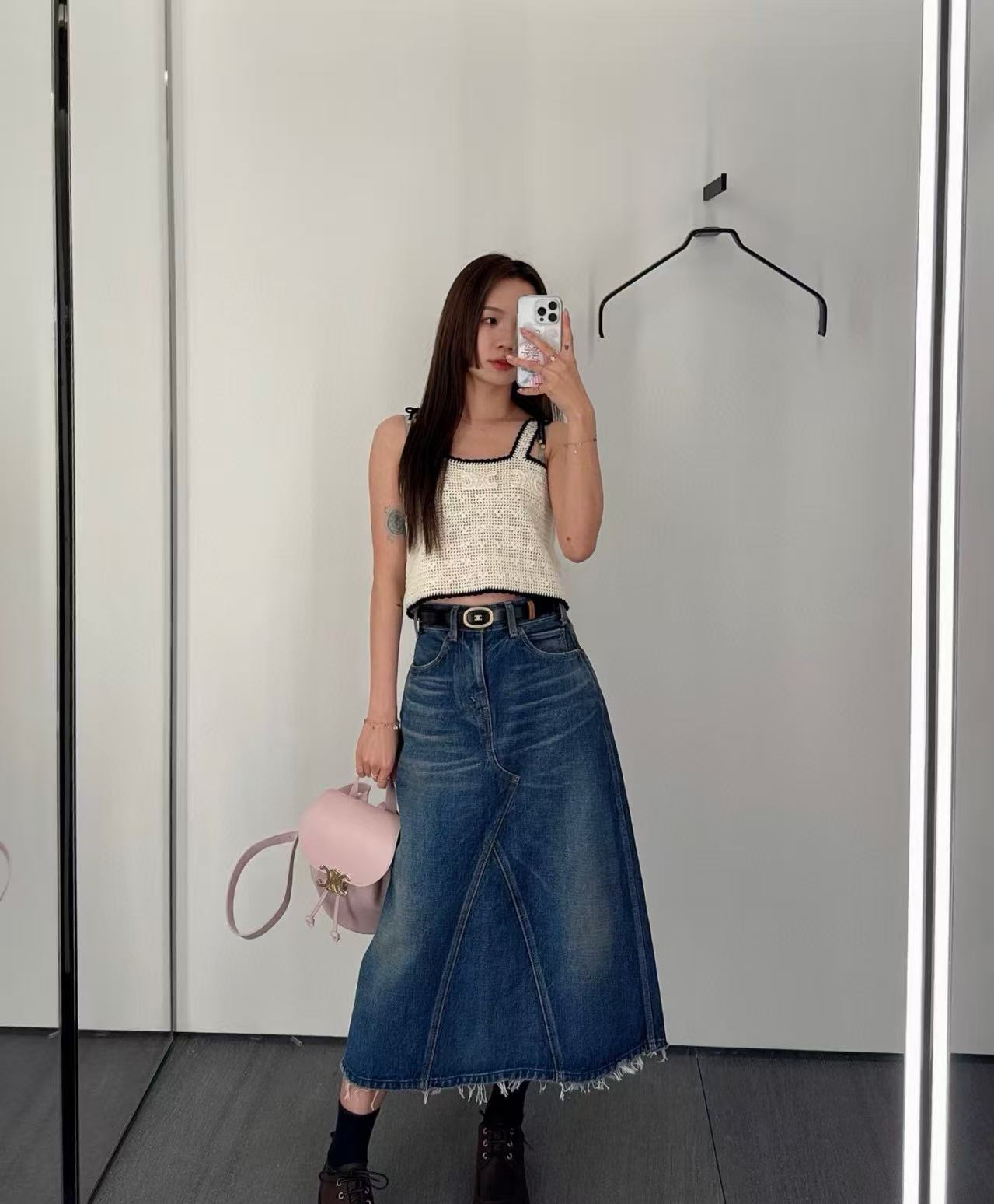 無論哪種風格,高腰版型都能拉長比例,毛邊設計又增添俏皮感,是秋冬必收的百搭單品。