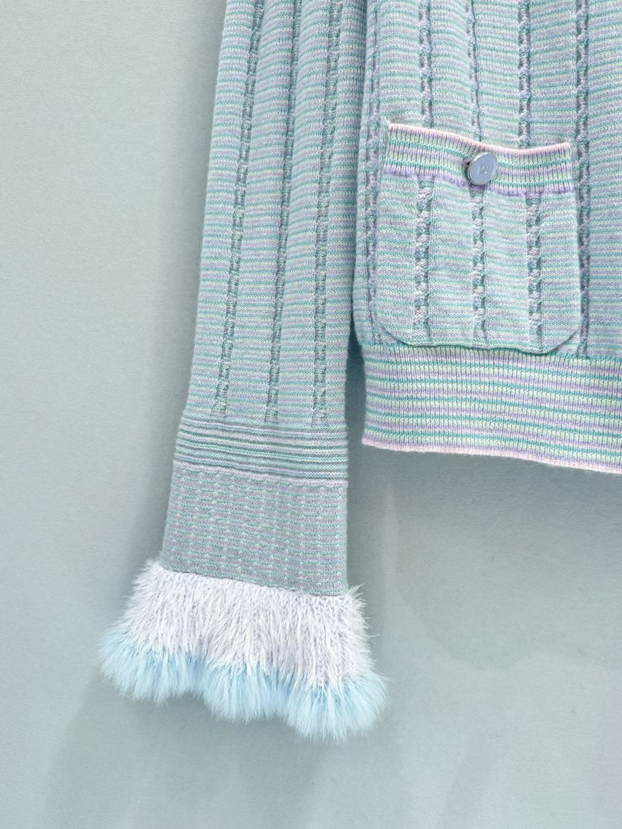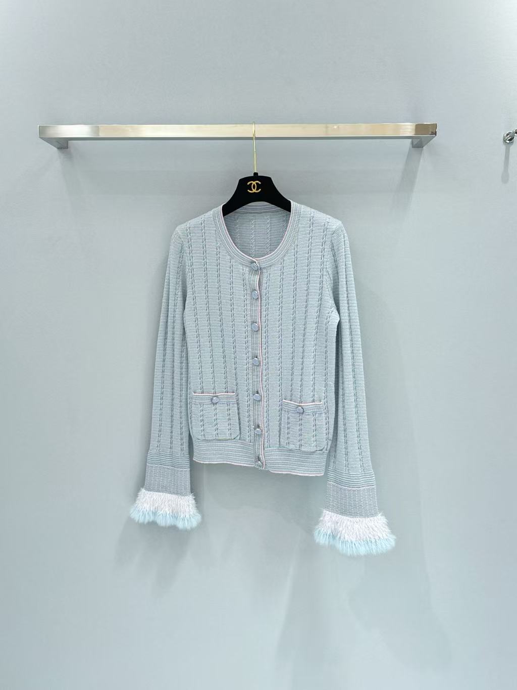 2025早秋 C家 喇叭荷葉袖拼毛開衫