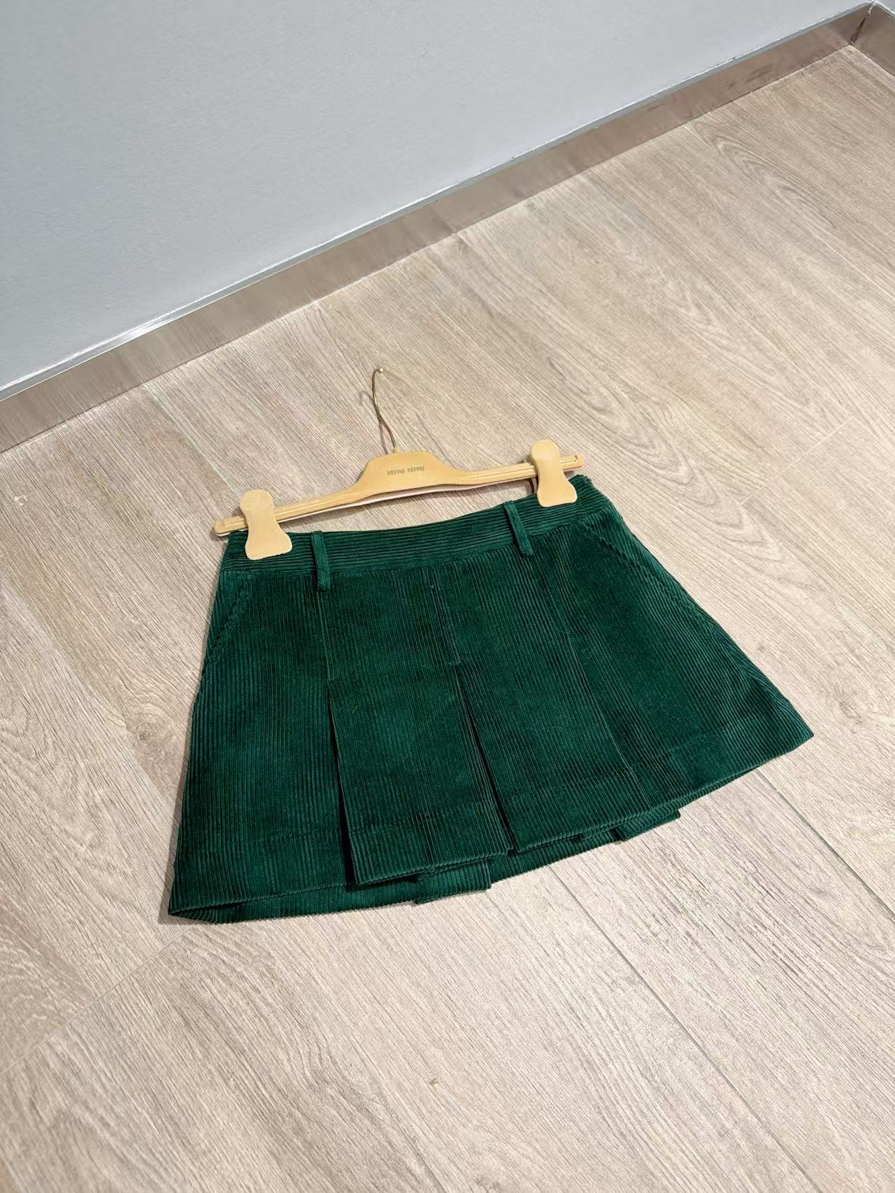 2025早秋 Miu家 知性學院風燈芯絨壓褶半裙,甜酷減齡又顯瘦!