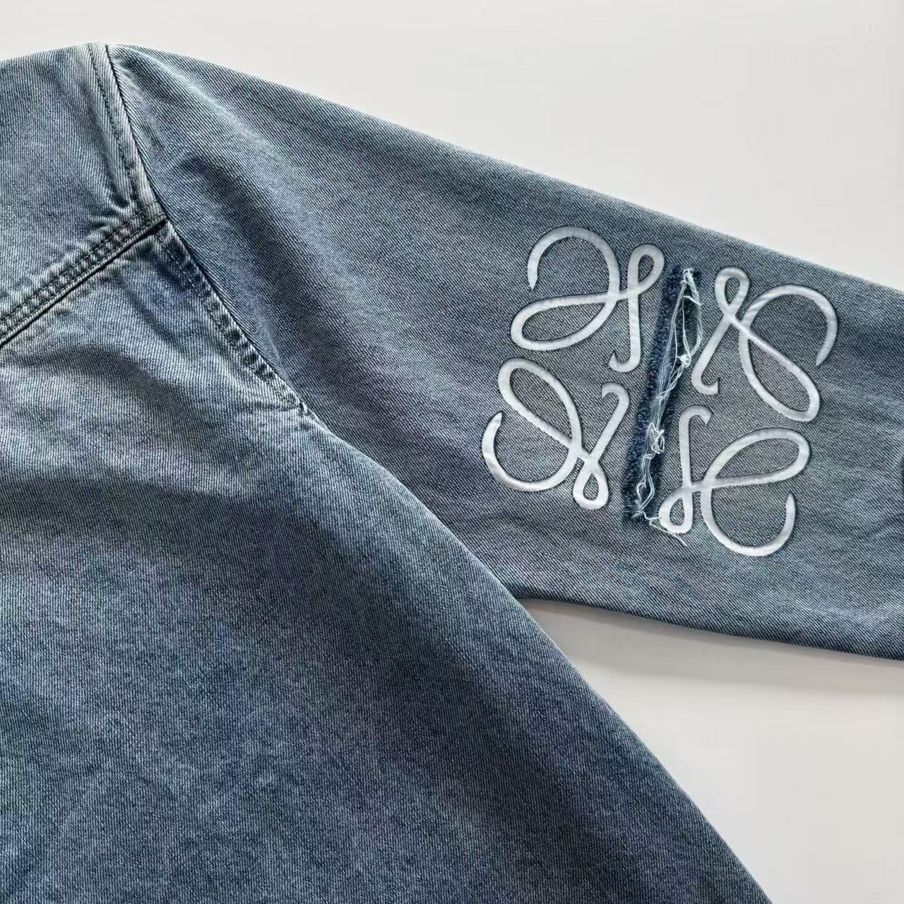 這款單寧襯衫外套不僅承襲了品牌特有的文藝氣息,更透過大膽的激光切割技術,將經典的 Anagram 標誌以極具現代感的方式呈現。