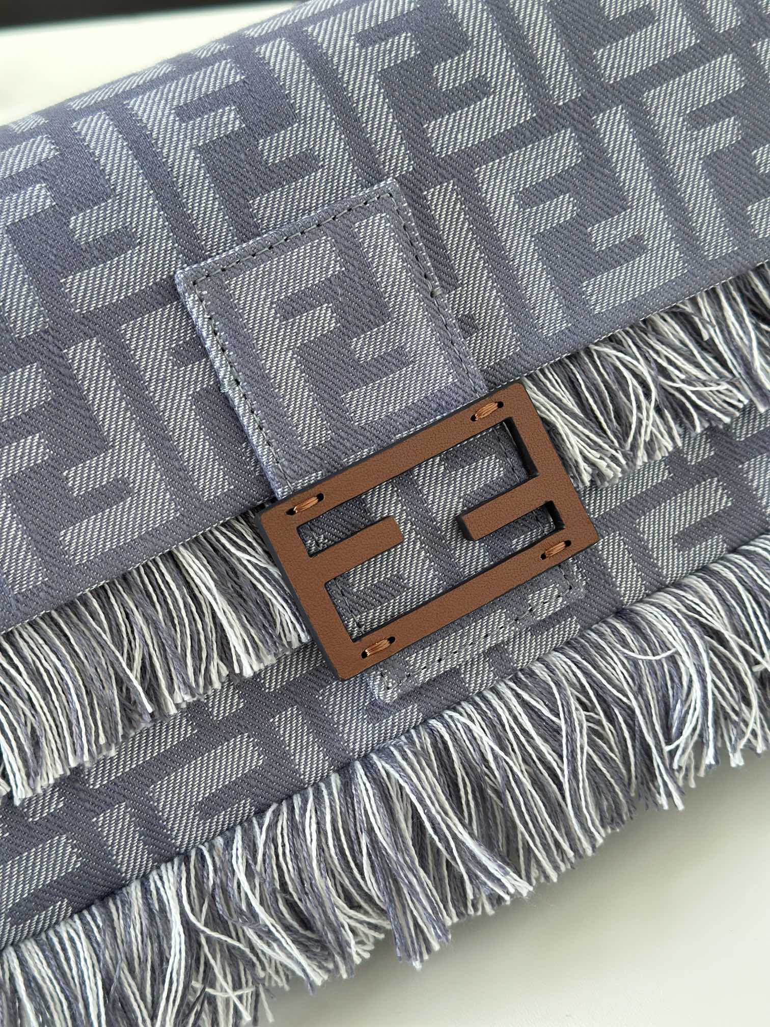 採用高質感牛仔提花材質,紋理清晰、層次感豐富,觸感挺實且耐用。搭配經典 FF monogram 元素,結合流蘇裝飾,展現品牌獨有的精緻與玩心。