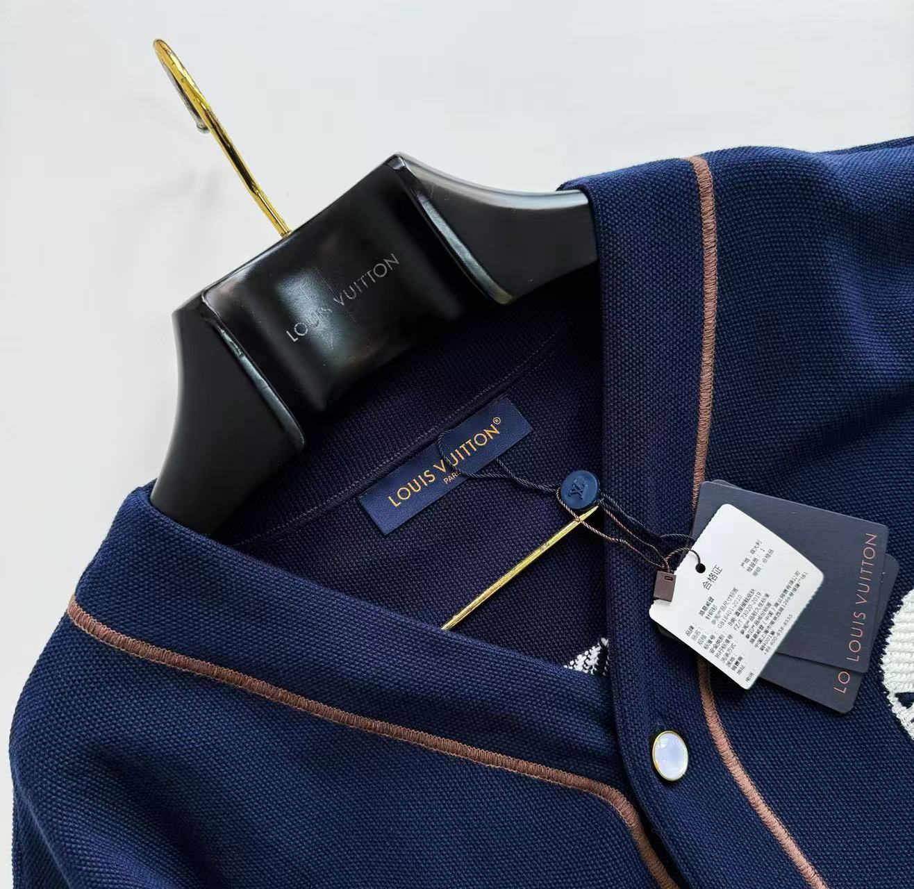 精緻鈕扣:鈕扣是特別定制的激光刻字電鍍古金鑽扣,每一個都充滿了高級感,為整件外套增添了一份奢華與設計感。