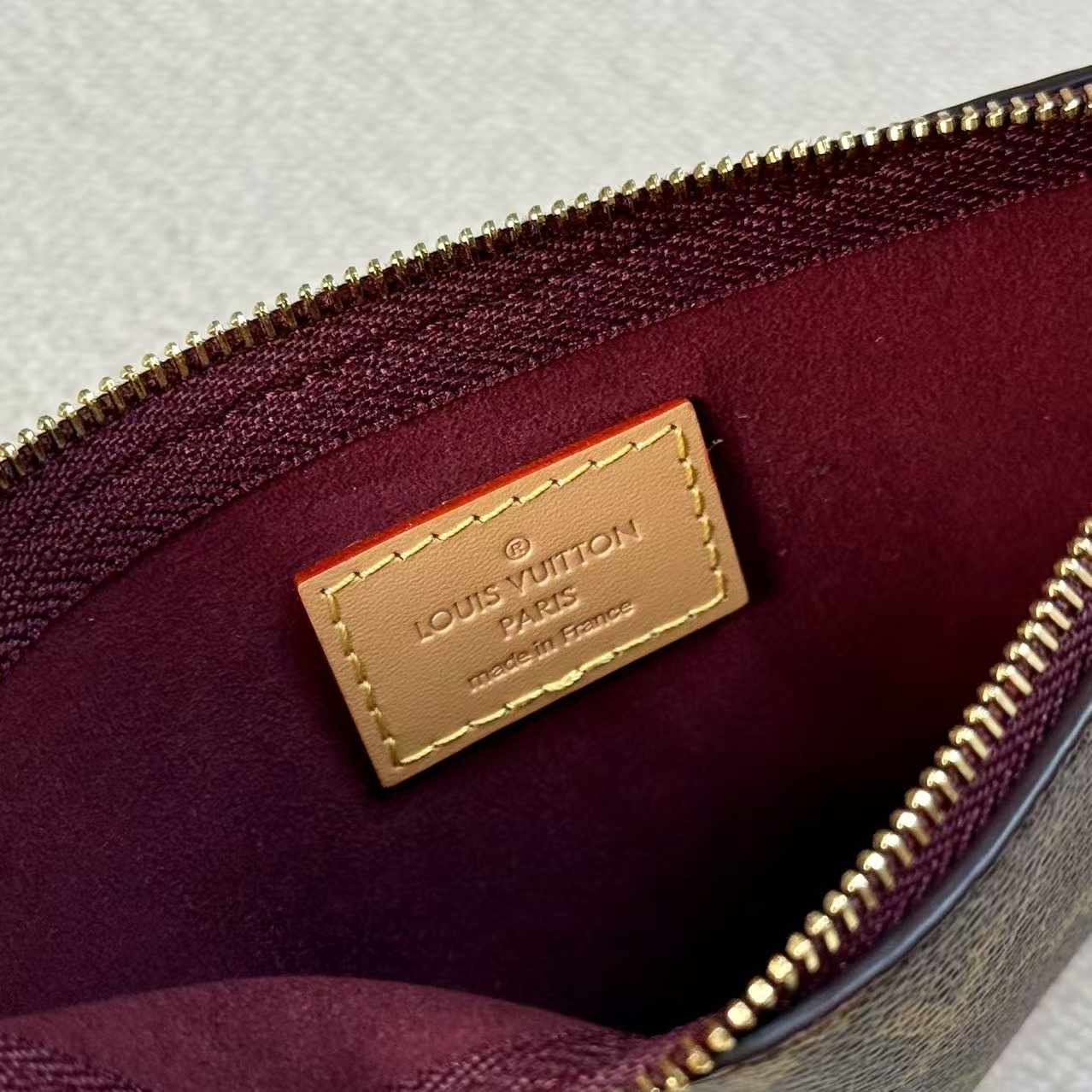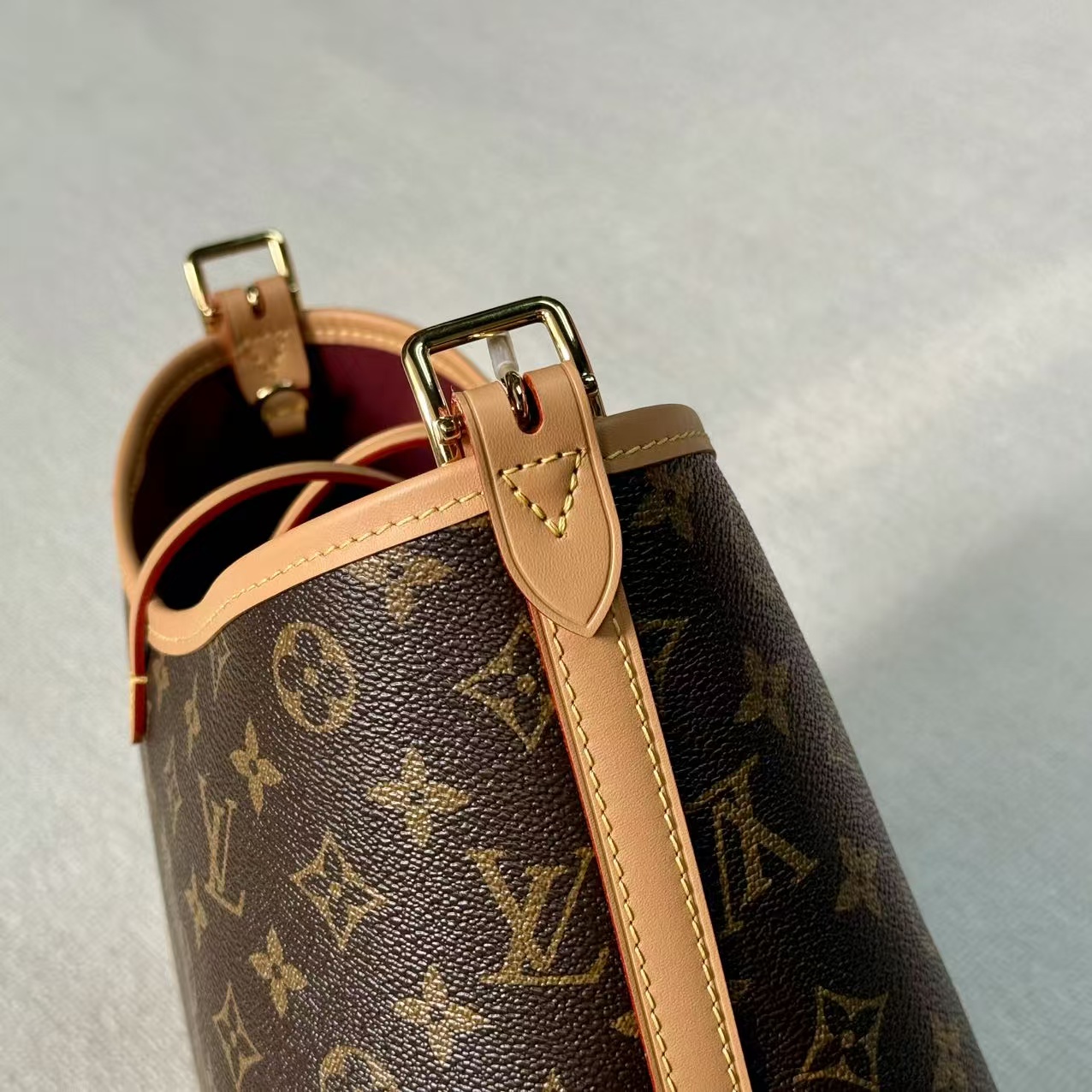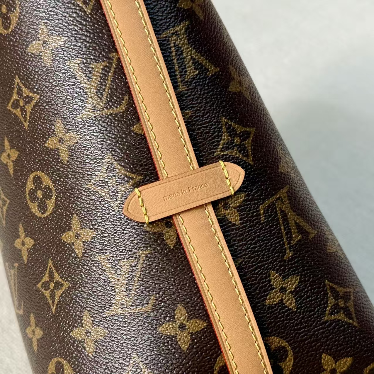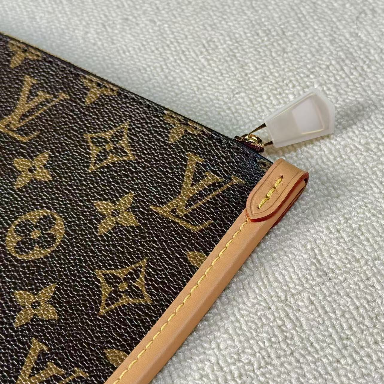 材料主體:採用品牌最具標誌性的 Monogram 塗層帆布。此材質具備優異的防潑水與抗磨損特性,即使在日常頻繁使用的情況下,依然能維持極佳的視覺美感與穩定性。