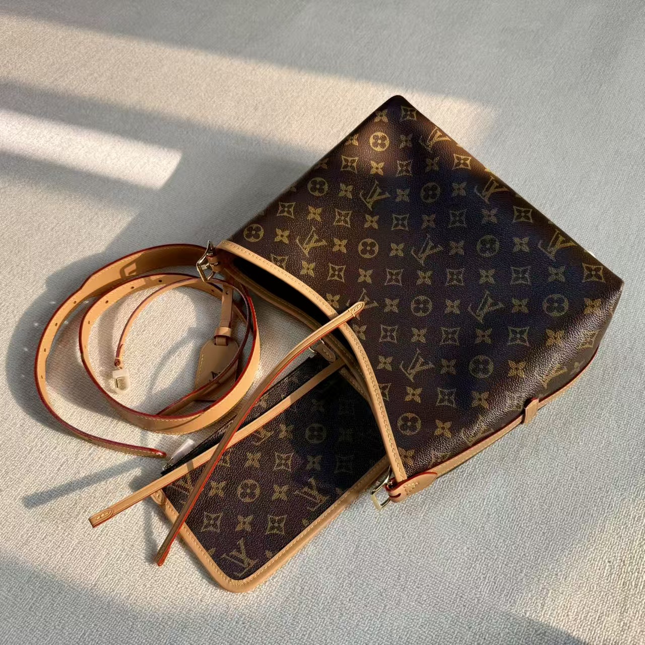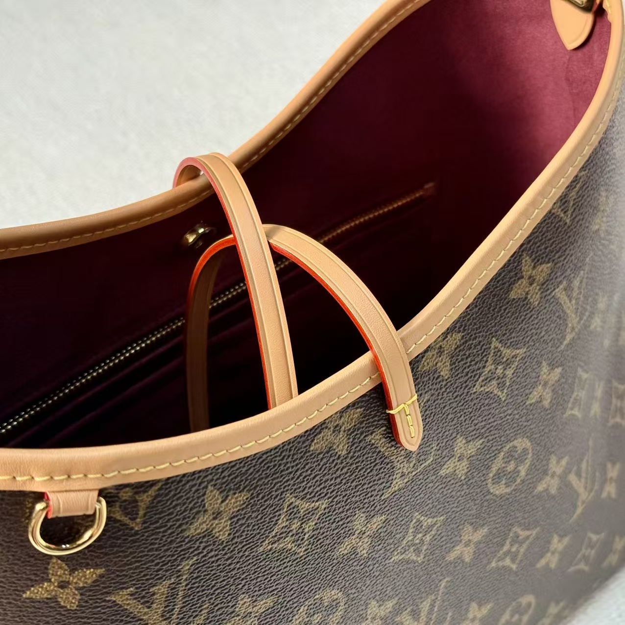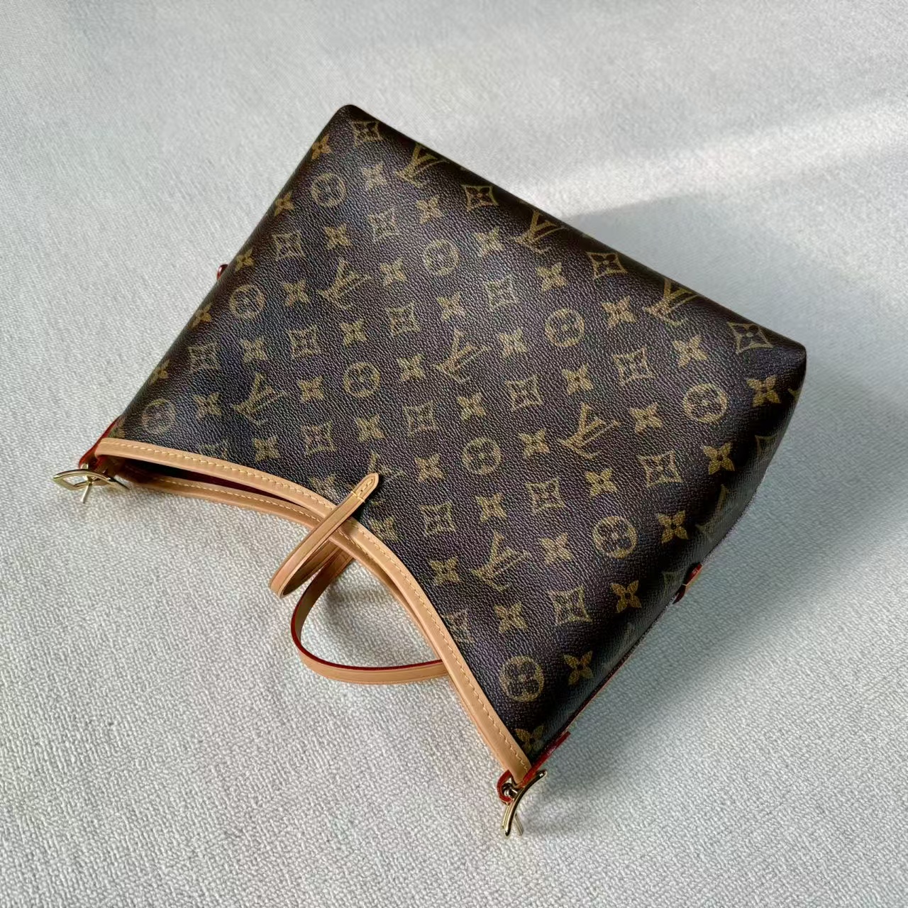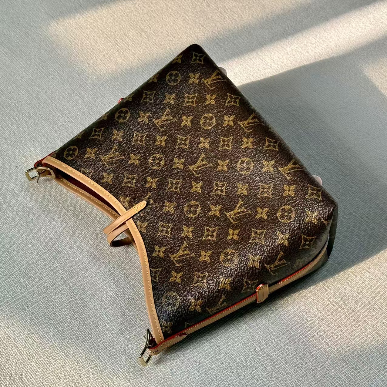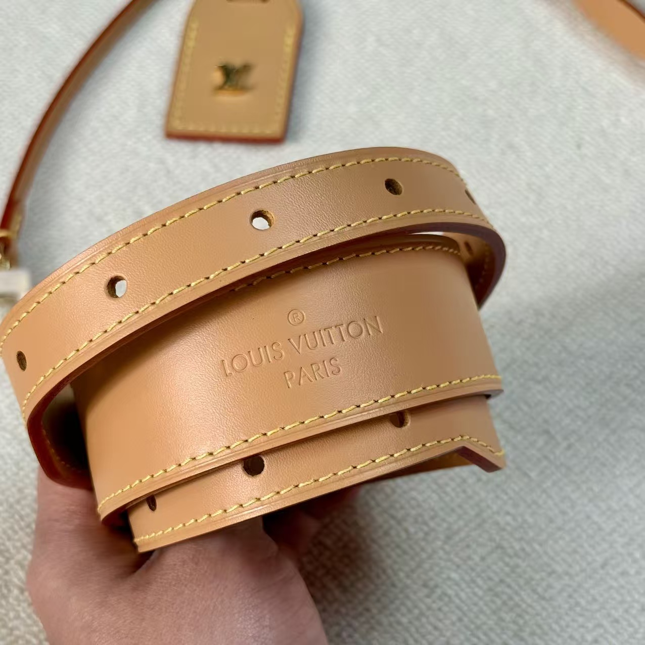 材料主體:採用品牌最具標誌性的 Monogram 塗層帆布。此材質具備優異的防潑水與抗磨損特性,即使在日常頻繁使用的情況下,依然能維持極佳的視覺美感與穩定性。