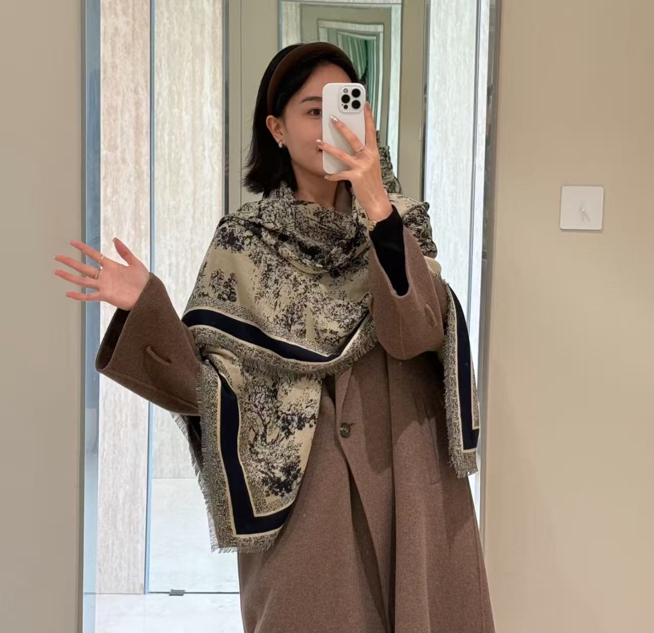 143×143cm超大正方形,可披可圍可當披肩,配大衣、毛衣、西裝外套通通無敵,冬天出門靠這條就夠,重點是這版還原度變態到連專櫃SA都看傻,市面上那些一眼假完全比不上!