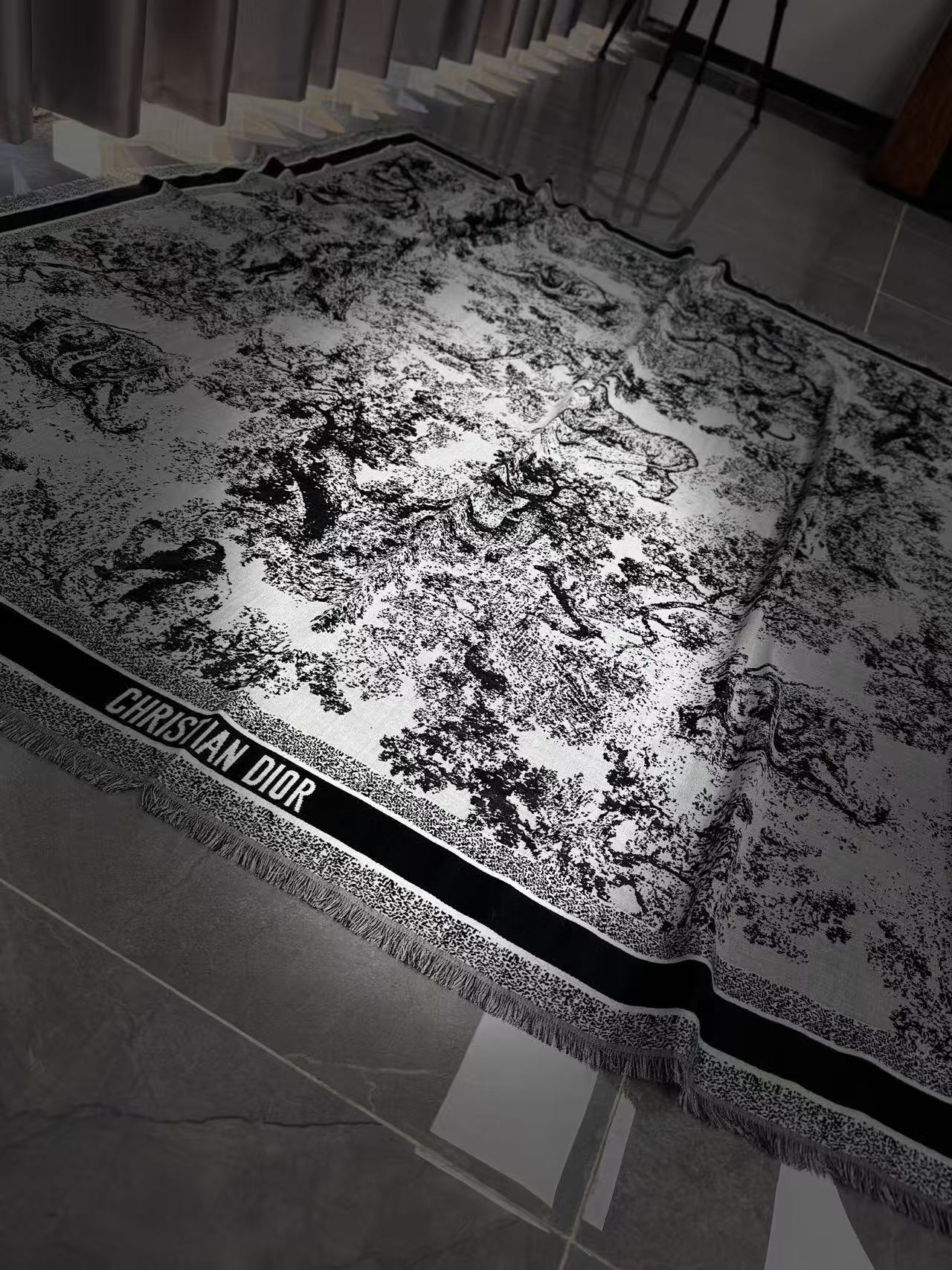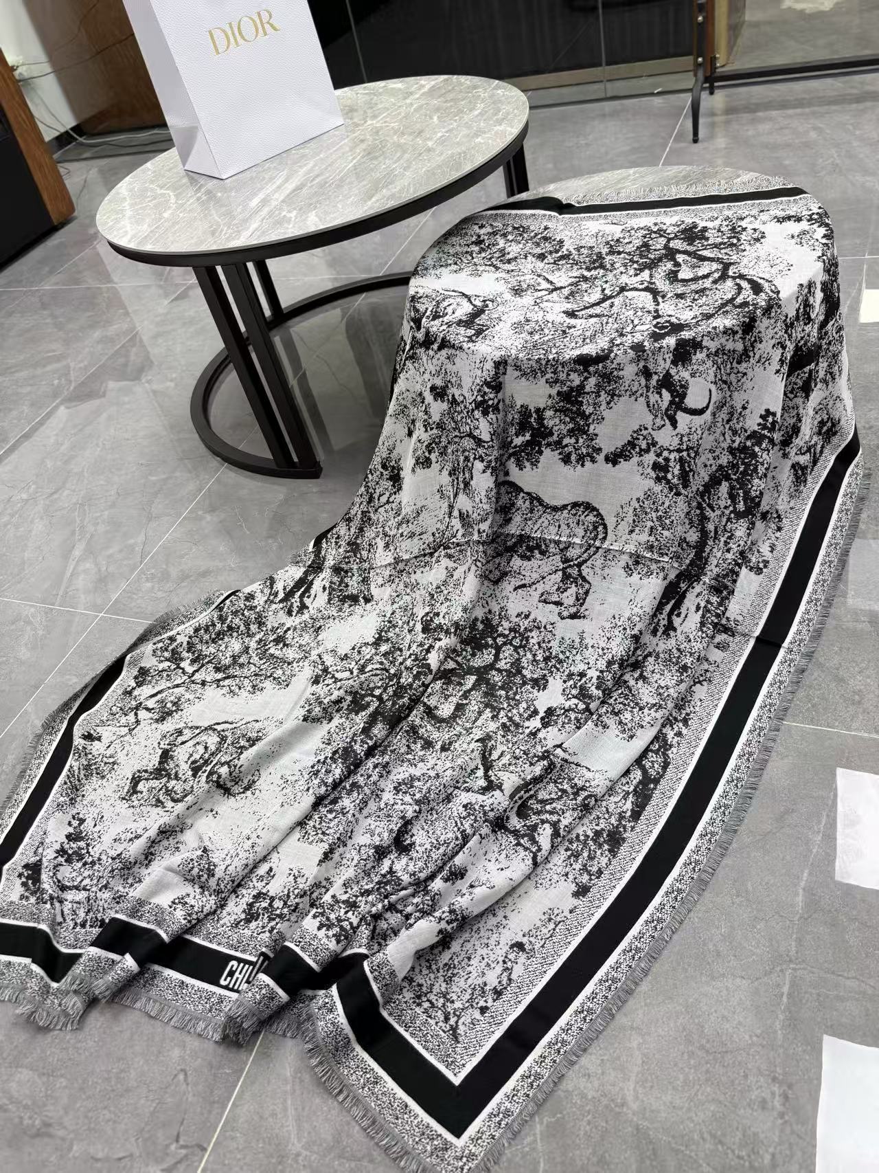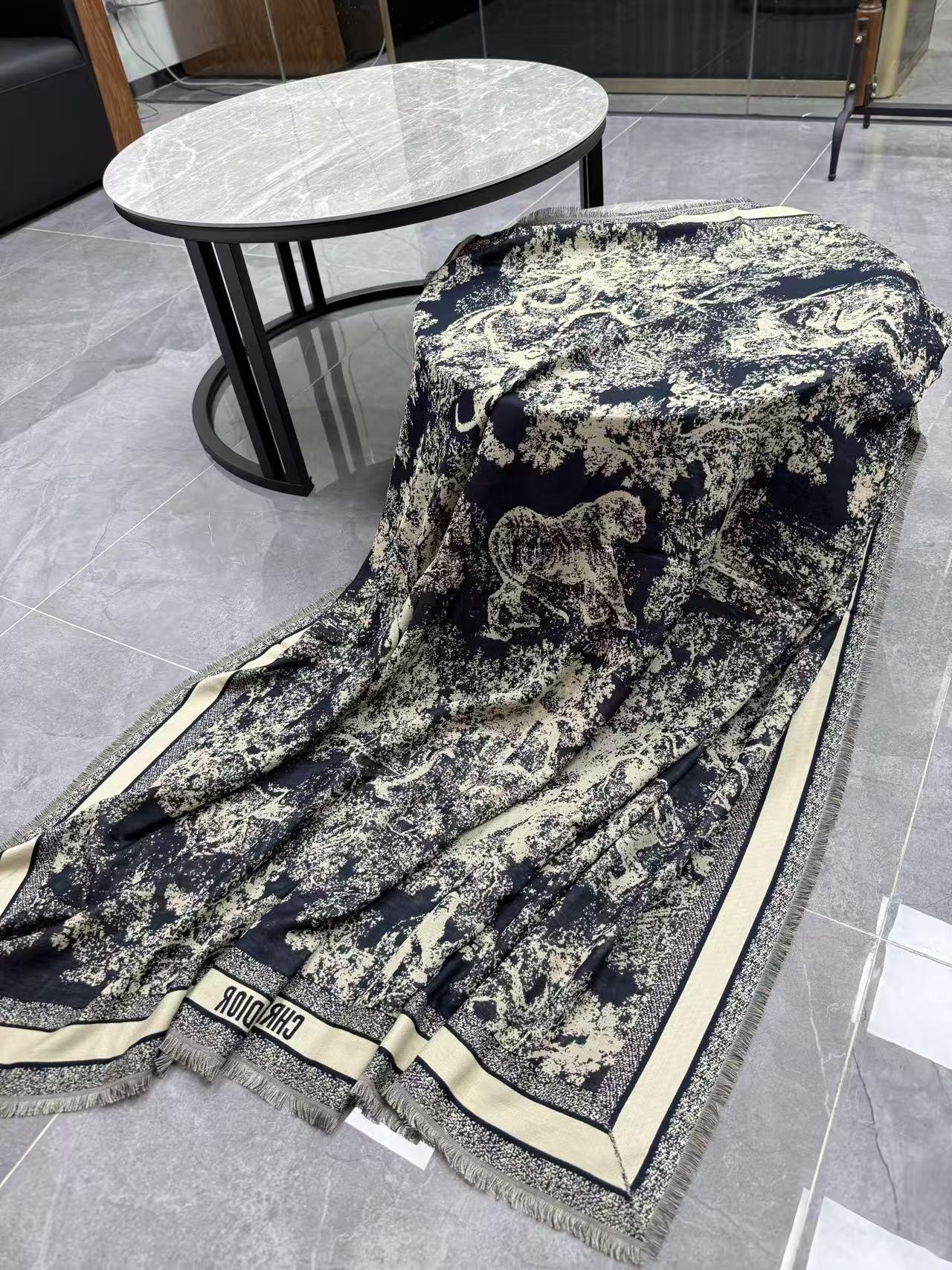 這條根本是「把整座動物園織進圍巾」的天花板神物,遠看就是經典黑白/駝藍配色,近看才發現滿版小象、小熊、長頸鹿全部用手工剪花+雙面平紋織出來,立體到像在跳舞,隨便一披一圍整個氣場從台北變巴黎老錢動物園,貴到讓路人自動幫你讓路~