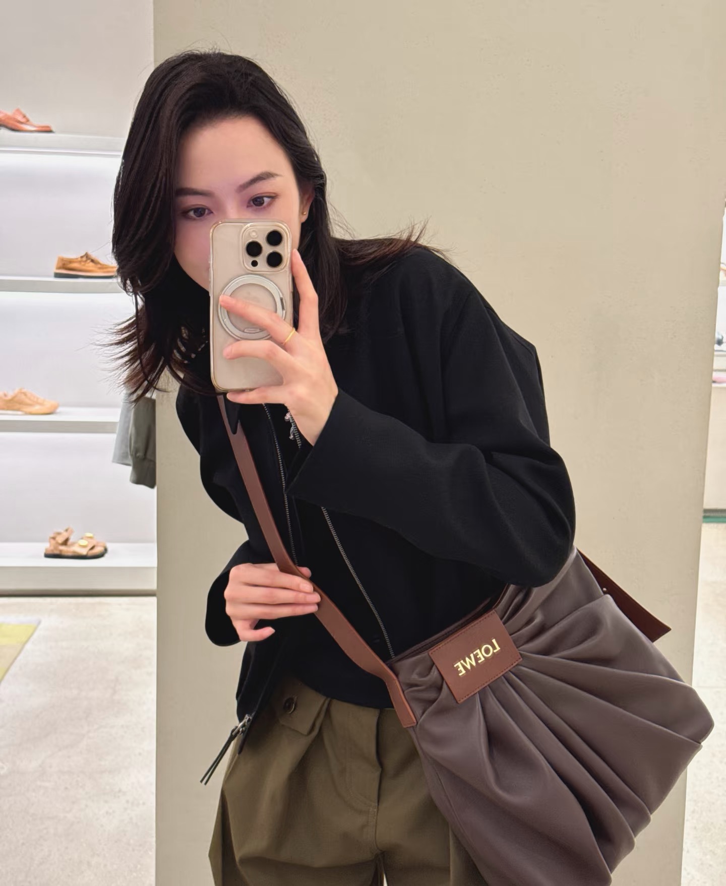 整體包型自然垂墜、不刻意卻非常有態度,搭配細緻的褶皺輪廓與低調質感的 Logo 皮牌,呈現出一種「不張揚卻很懂穿」的時髦氛圍。