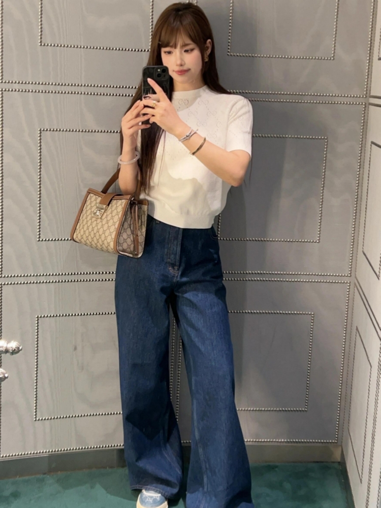 ✔︎ 假日外出:配牛仔褲與針織上衣,增添隨性時髦氛圍