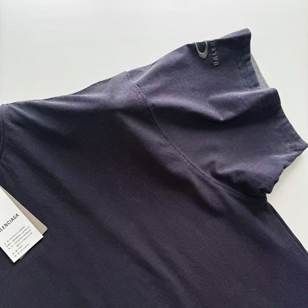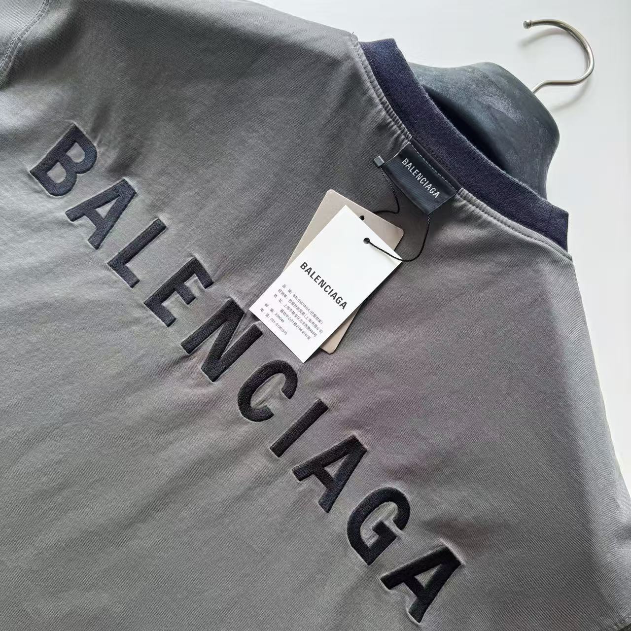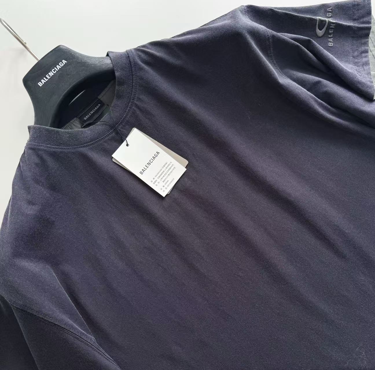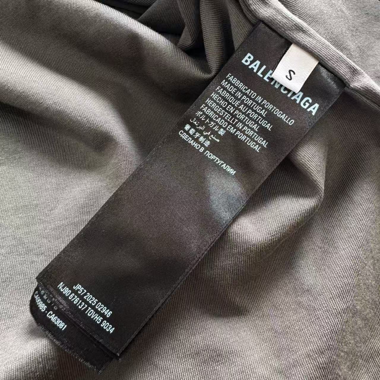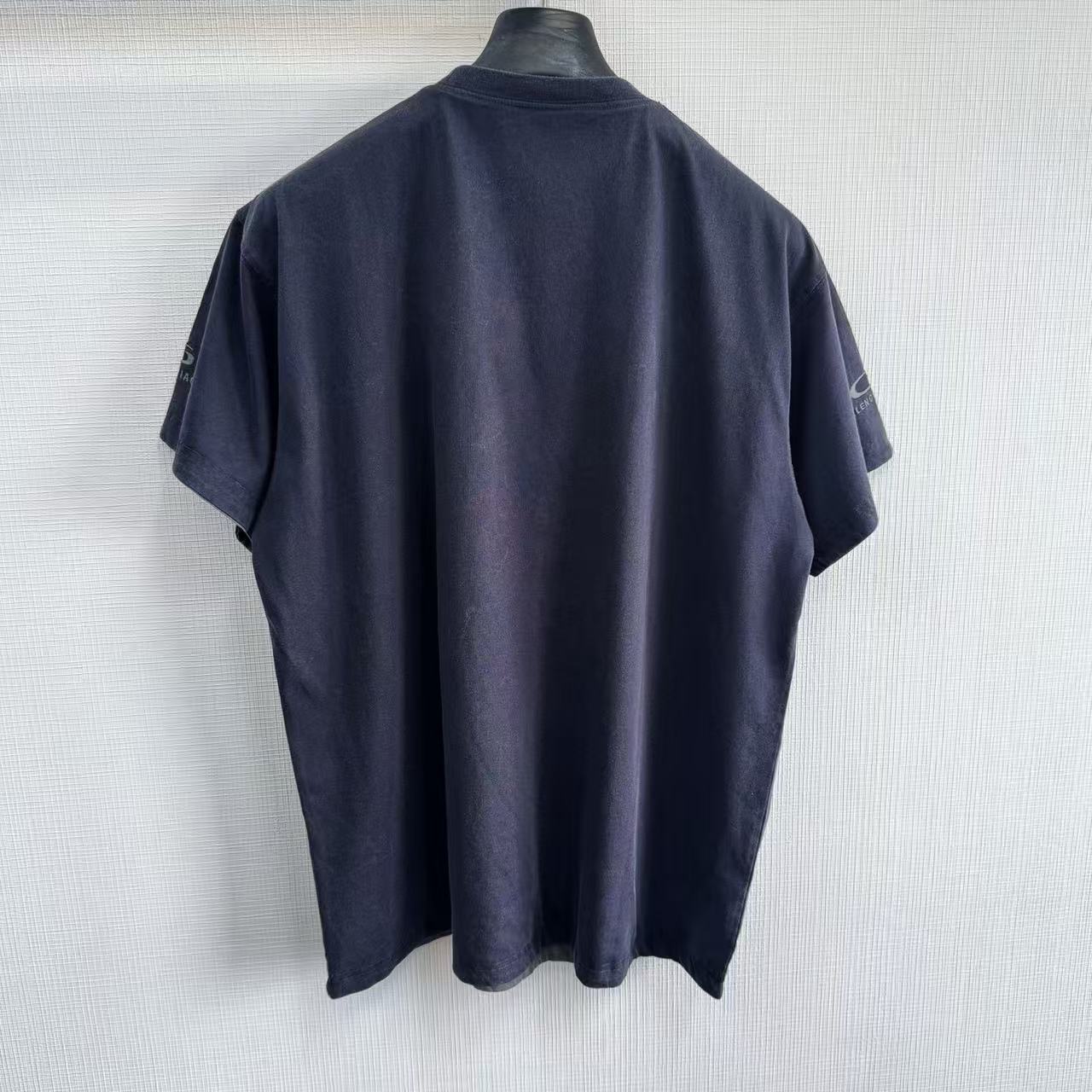 褪色水洗效果:T 恤經過了特殊的褪色灰色水洗效果處理,這是通過後整理工藝模擬自然舊化感的獨特技術。通過控制性的石磨、酶洗等工藝,在深色基底上形成不均勻的褪色痕跡,從而營造出柔和、復古的灰度視覺效果,充滿了故事感。