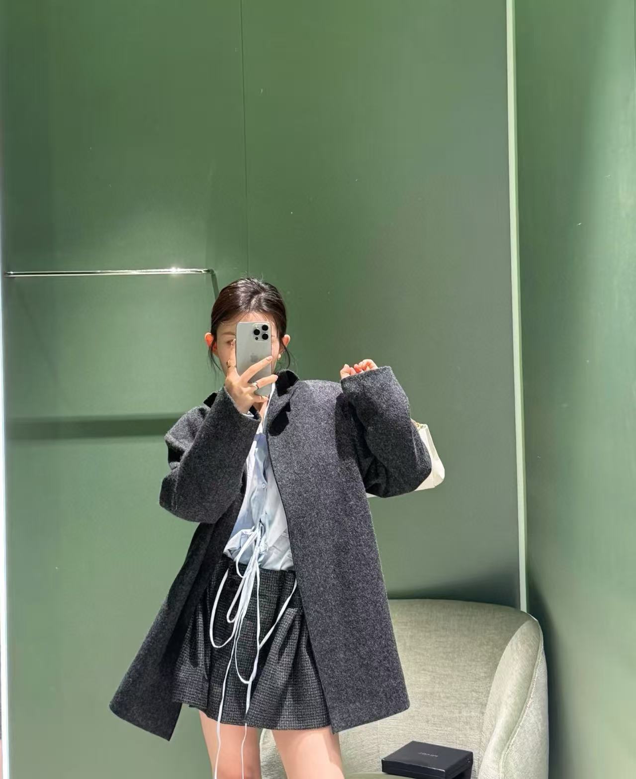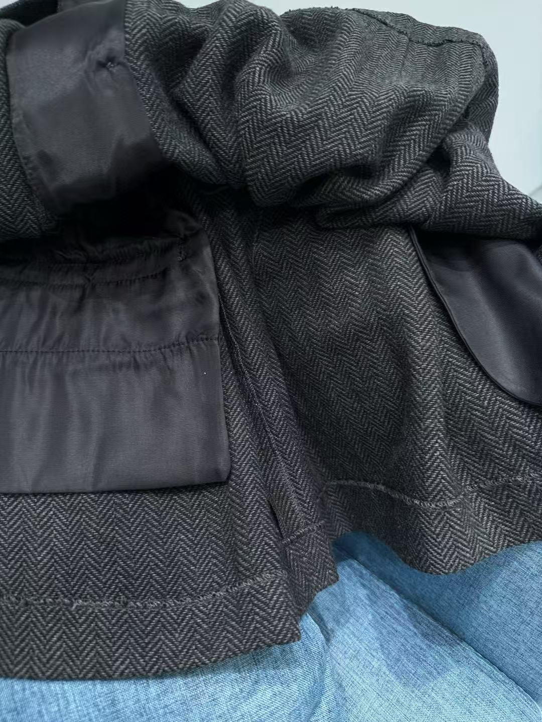 選用羊毛混紡材質,挺括有型又帶有溫暖質感,秋冬穿起來非常適合。