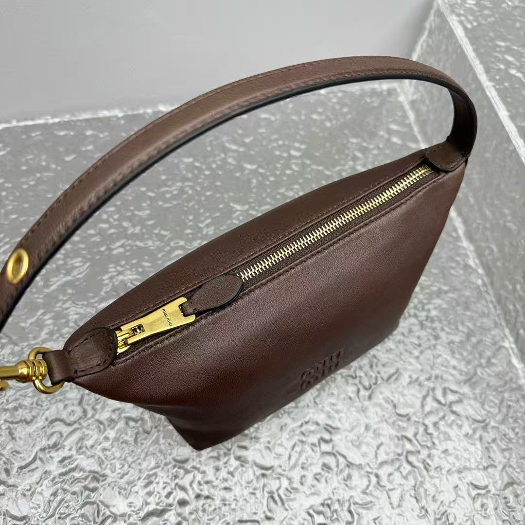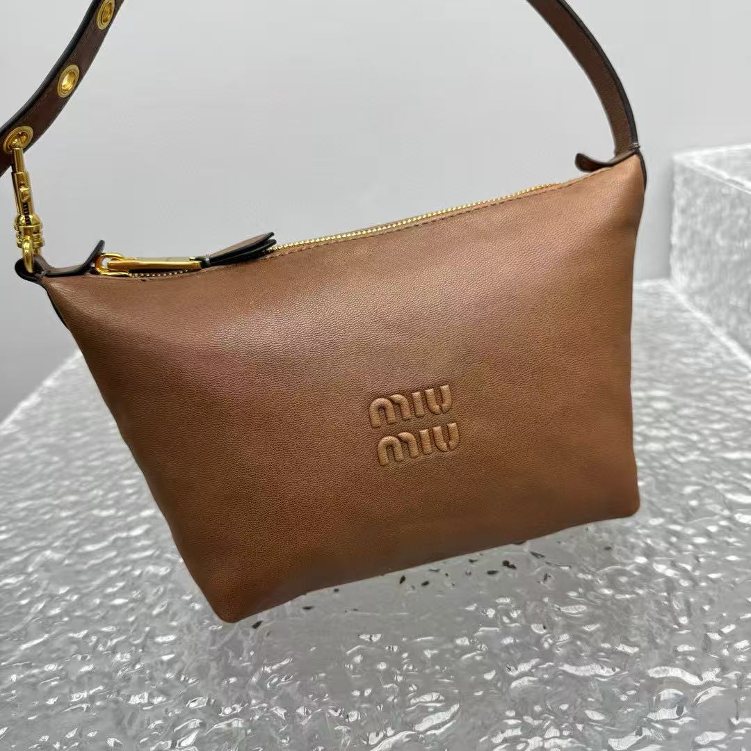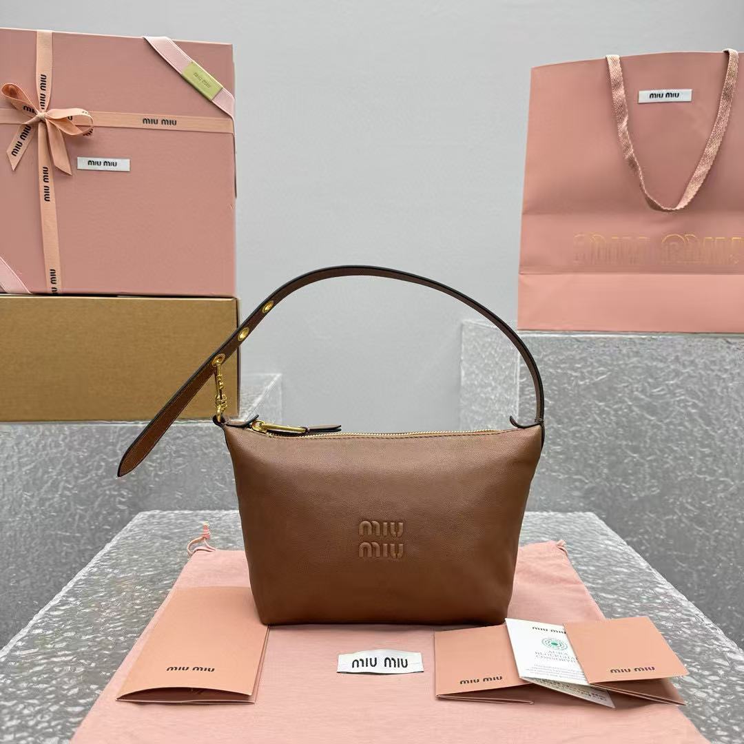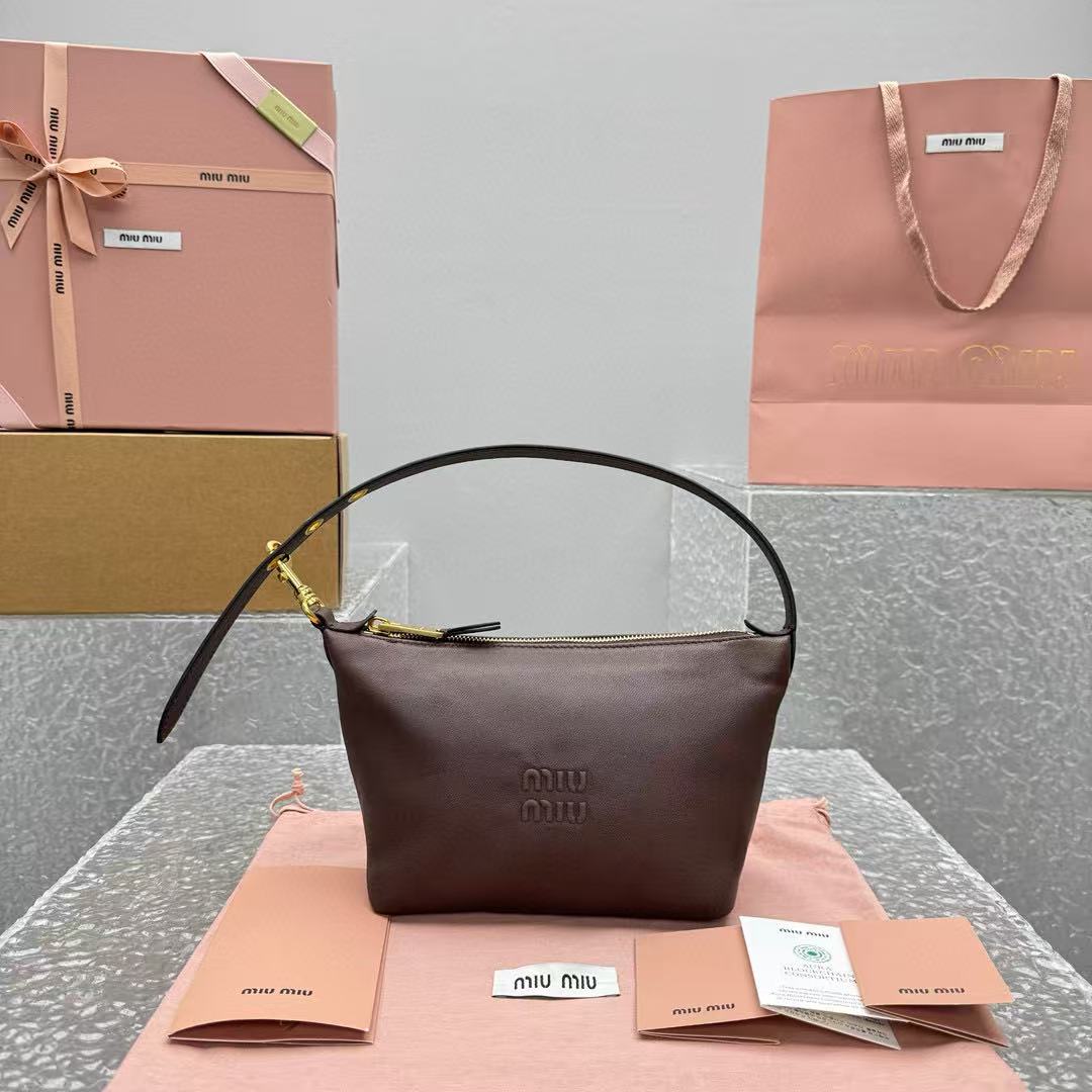經典棕色,百搭不敗:棕色調低調又溫暖,無論搭配休閒牛仔褲還是優雅連衣裙,都能完美融入,展現 MIU 的年輕與高級氣質。