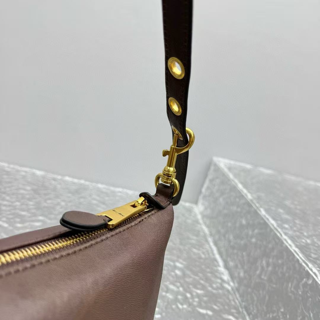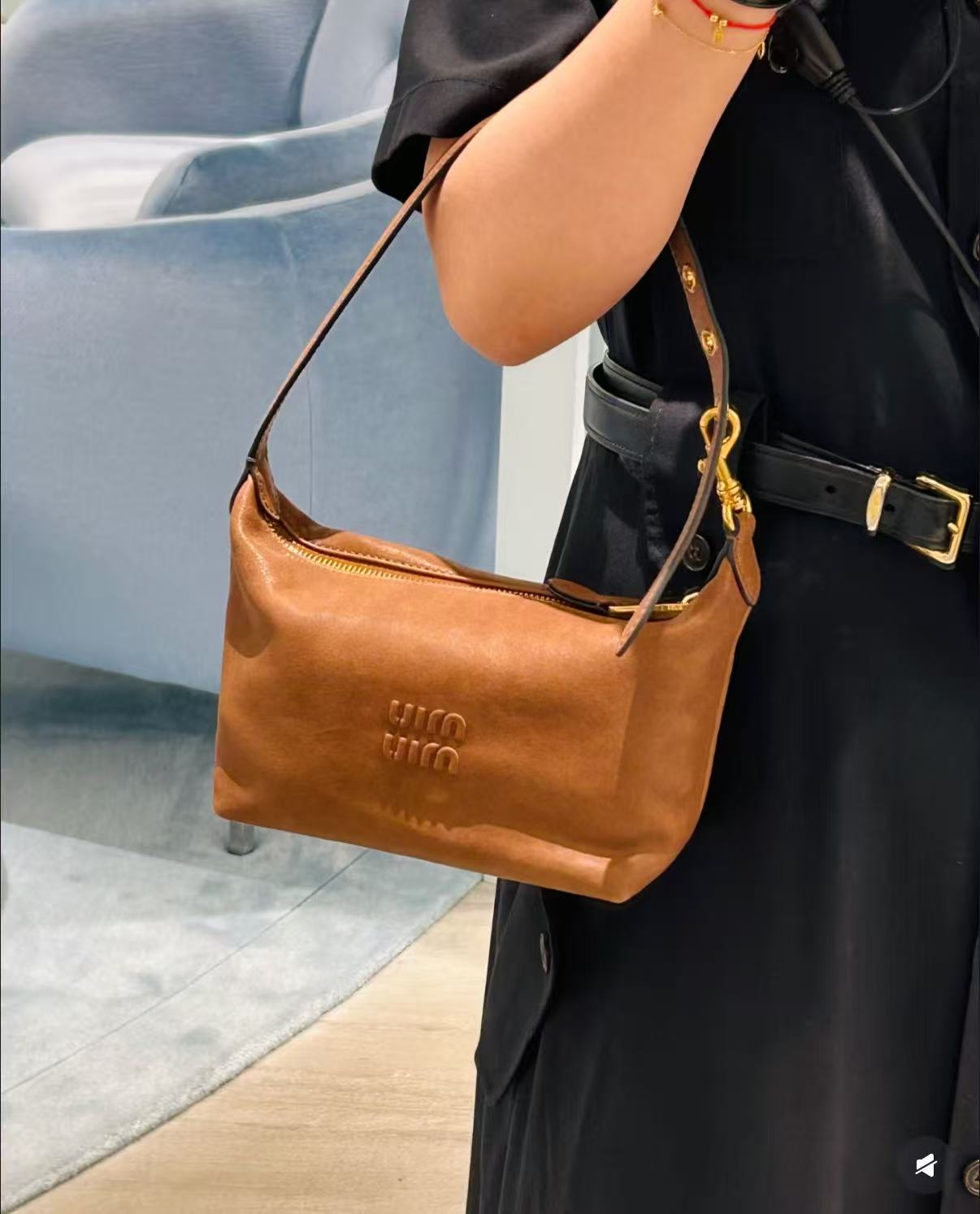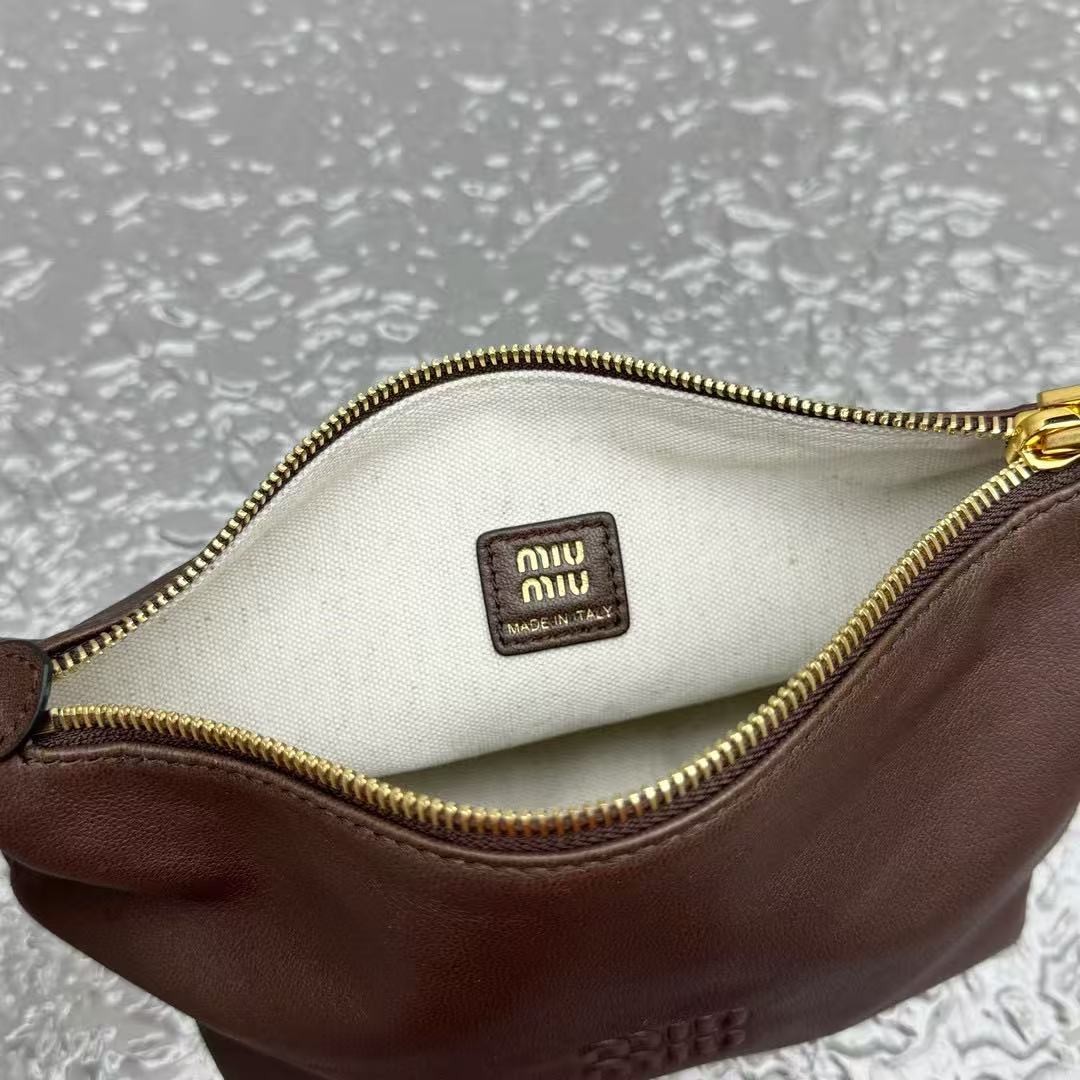 經典棕色,百搭不敗:棕色調低調又溫暖,無論搭配休閒牛仔褲還是優雅連衣裙,都能完美融入,展現 MIU 的年輕與高級氣質。