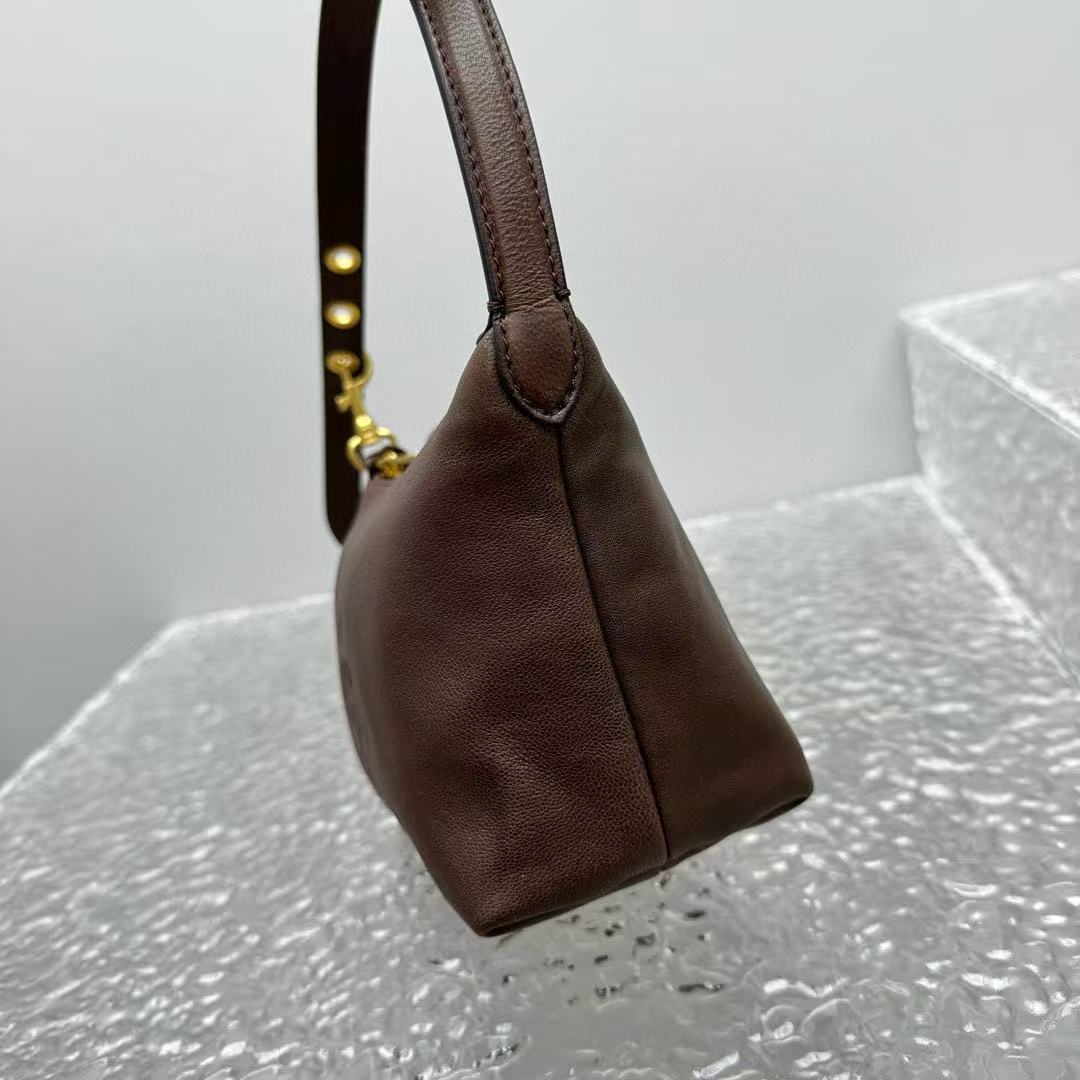 這款飯盒包採用全包身高質感棕色皮革,觸感柔軟細膩,帶來舒適的手感,同時皮質經過精心處理,耐看又耐用,散發低調奢華的質感。溫暖的棕色調百搭又耐髒,完美融入春夏各種穿搭。