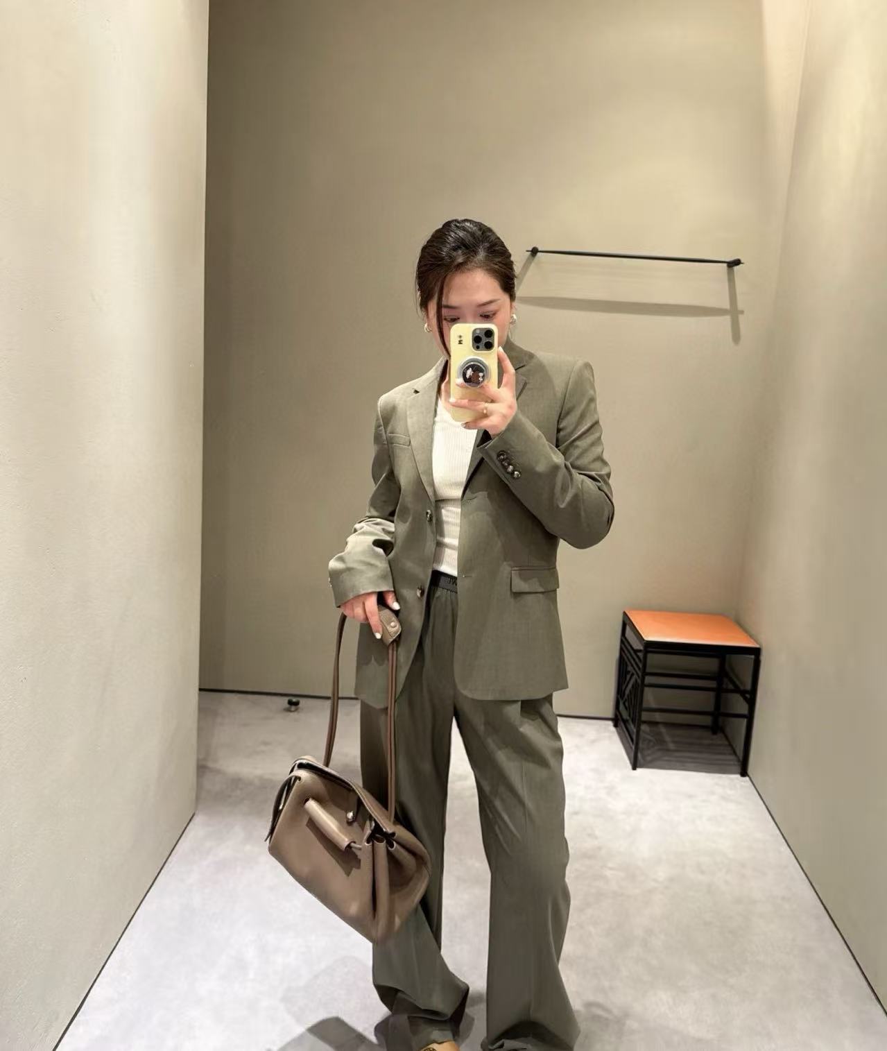 腰頭還特別點綴了品牌字母設計,小小細節卻超有存在感,低調卻藏不住的精緻感。顏色配得很高級,完全就是那種「一眼看就覺得貴」的色調。