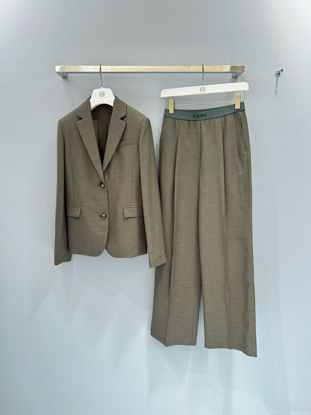 無論是搭配同系列卡其綠西裝外套,整套走高級老錢風;或是單穿一件針織、襯衫,都能很百搭不挑人。