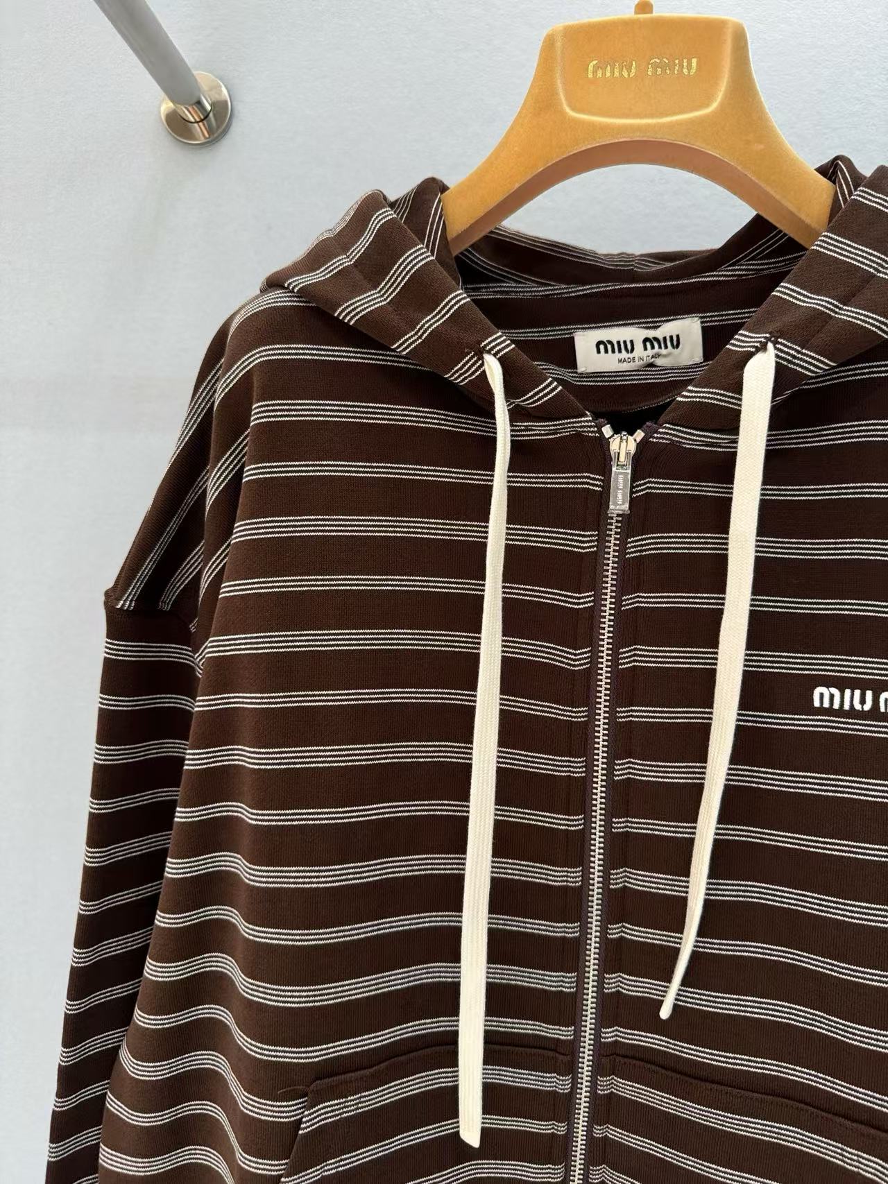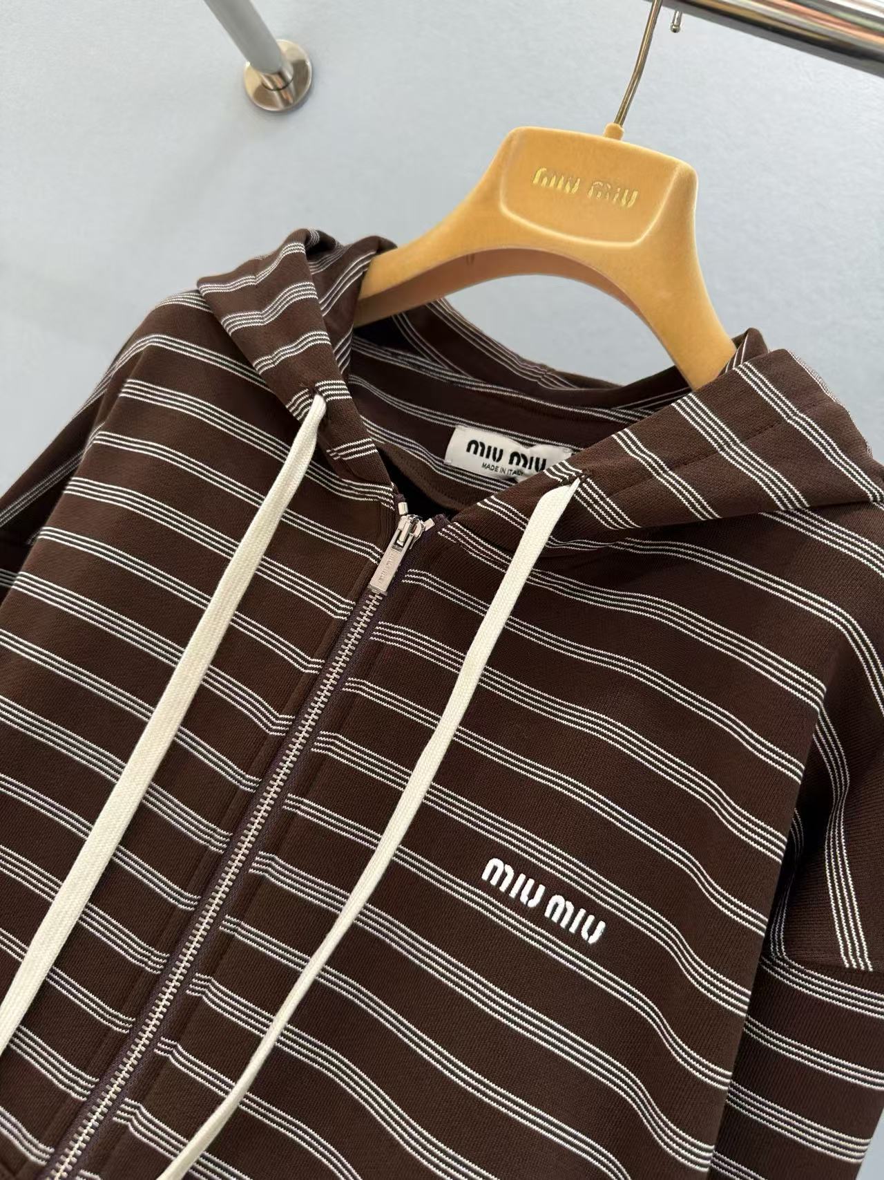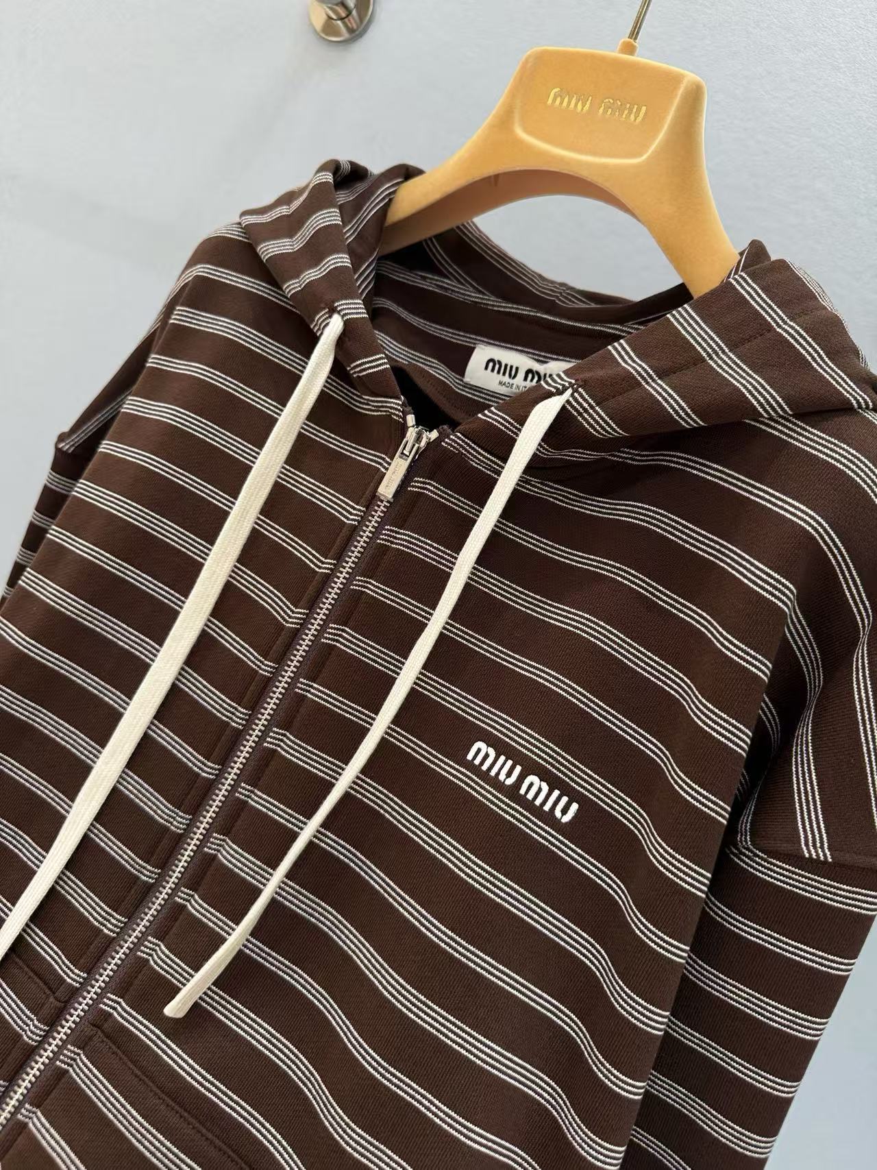 2025早秋 Miu家 咖色條紋棉質拉鍊外套