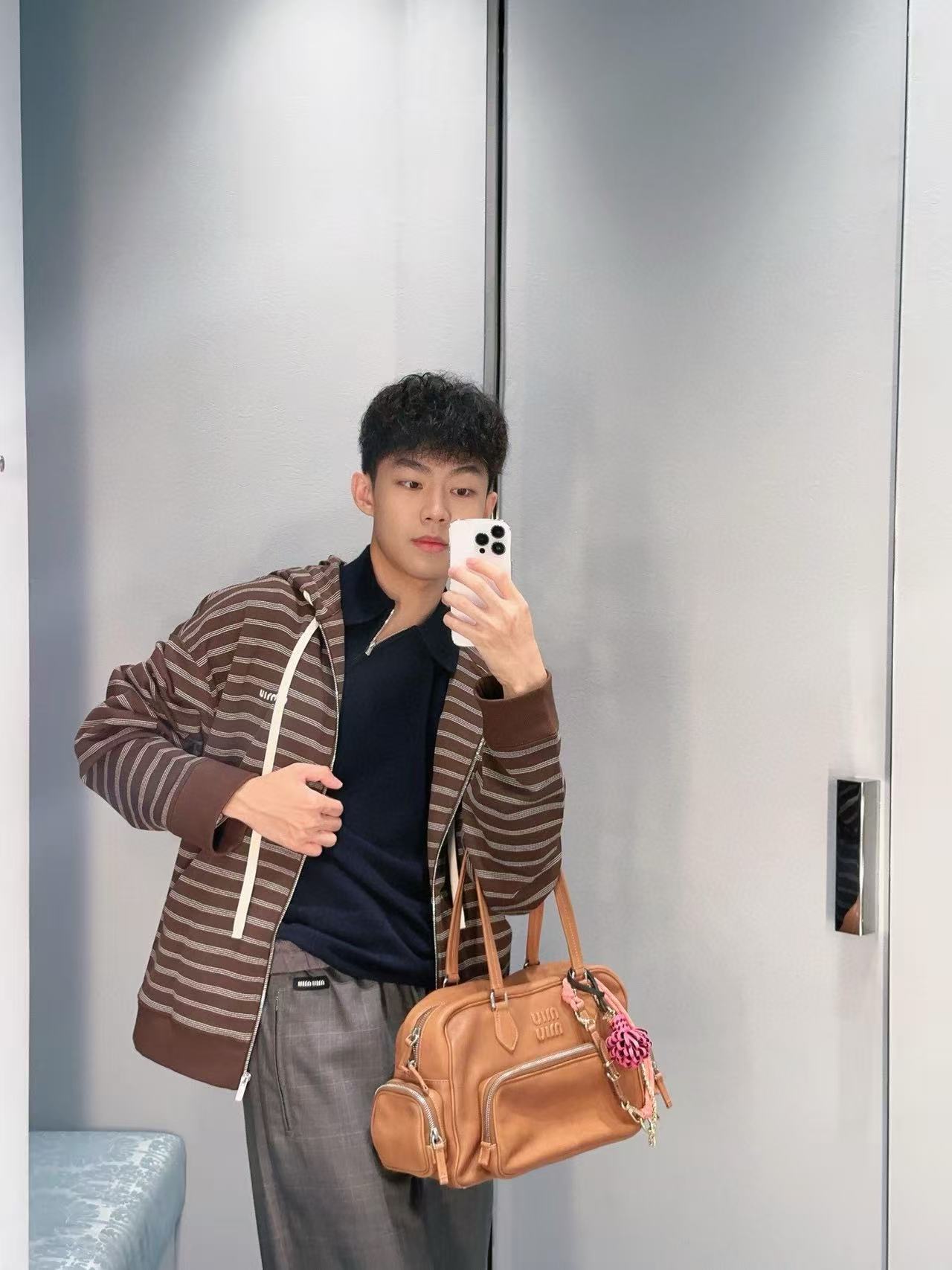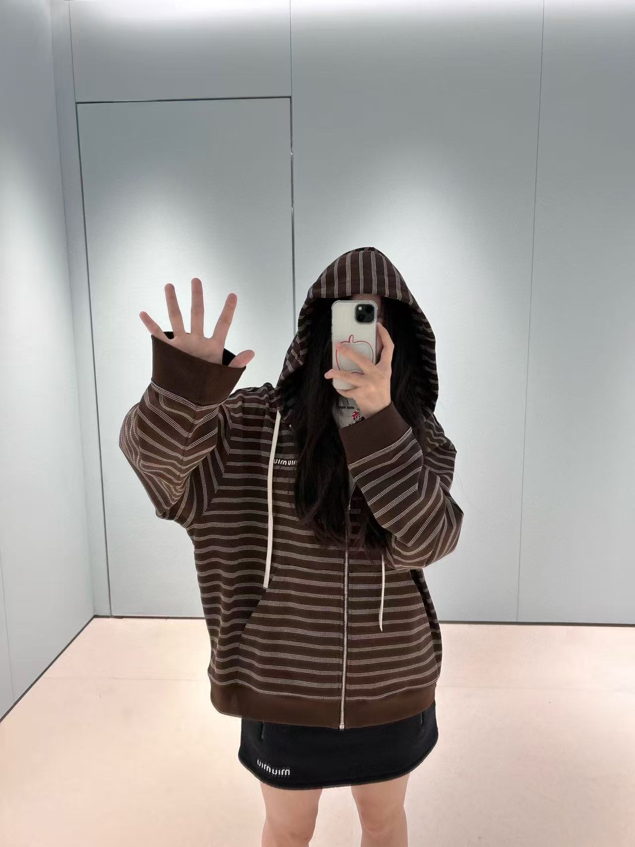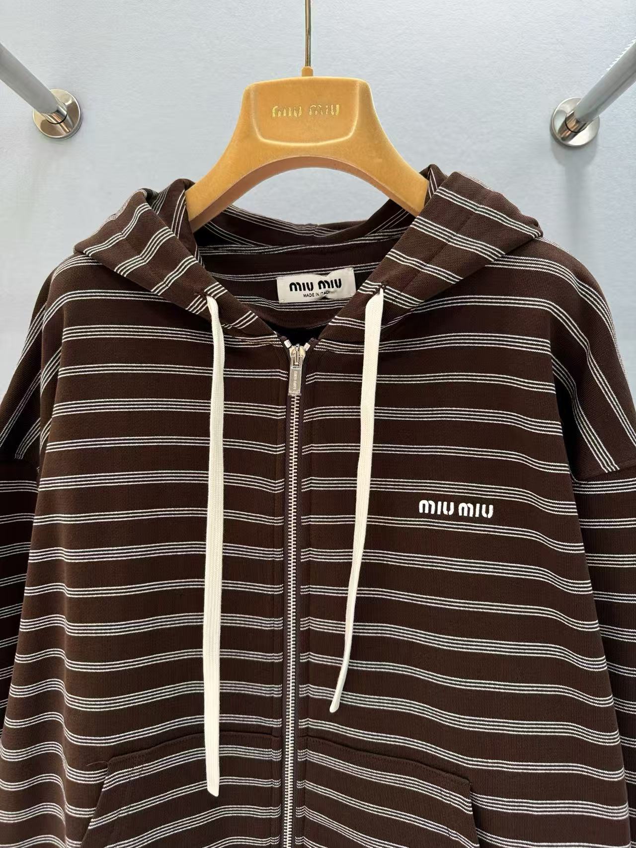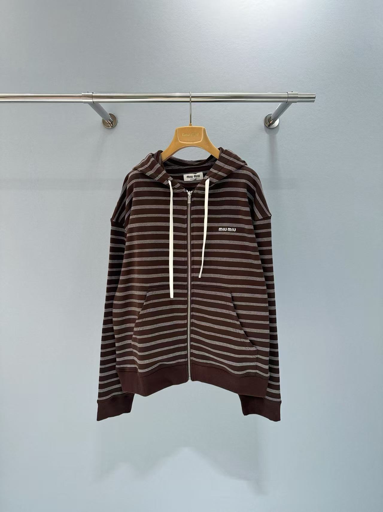2025早秋 Miu家 咖色條紋棉質拉鍊外套
