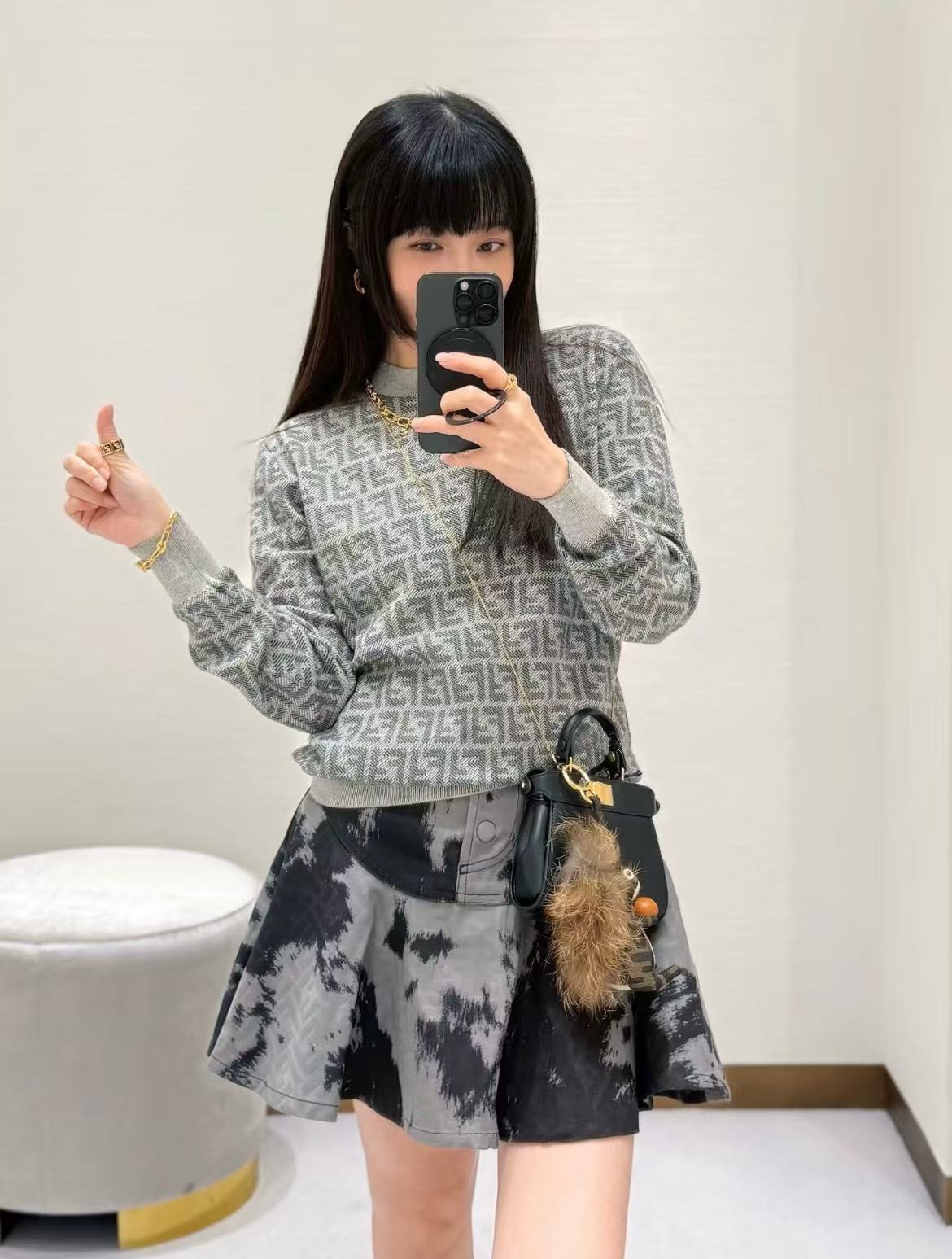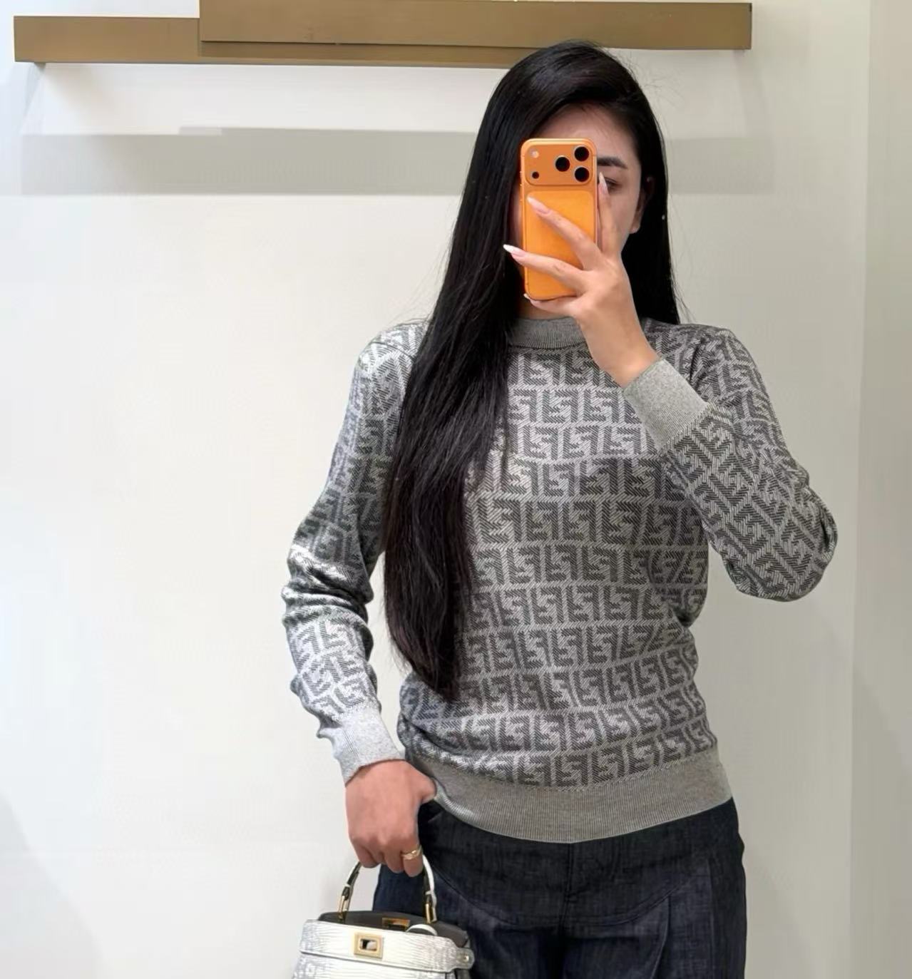 滿版的斜對角 FF 提花超級有辨識度,但又不會太張揚,用灰調呈現真的又高級又耐看,隨便一穿就是「懂的人自然懂」的氣場。