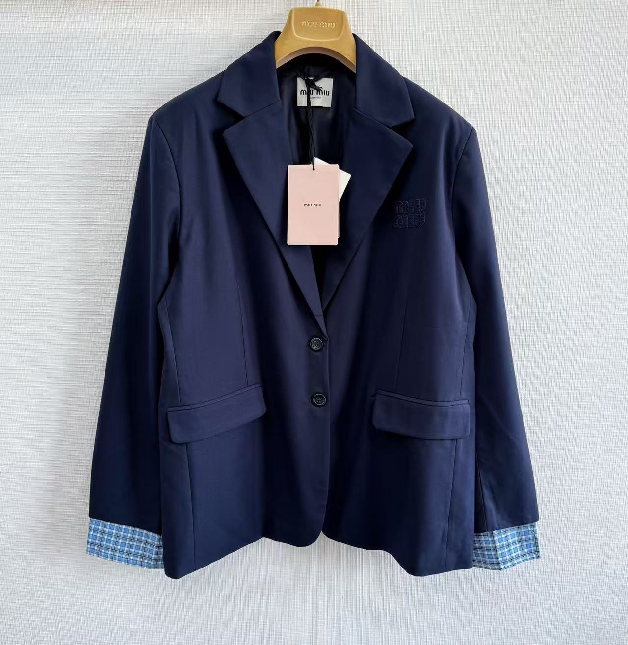 2025早秋新品 Miu家 格子袖口羊毛西裝外套