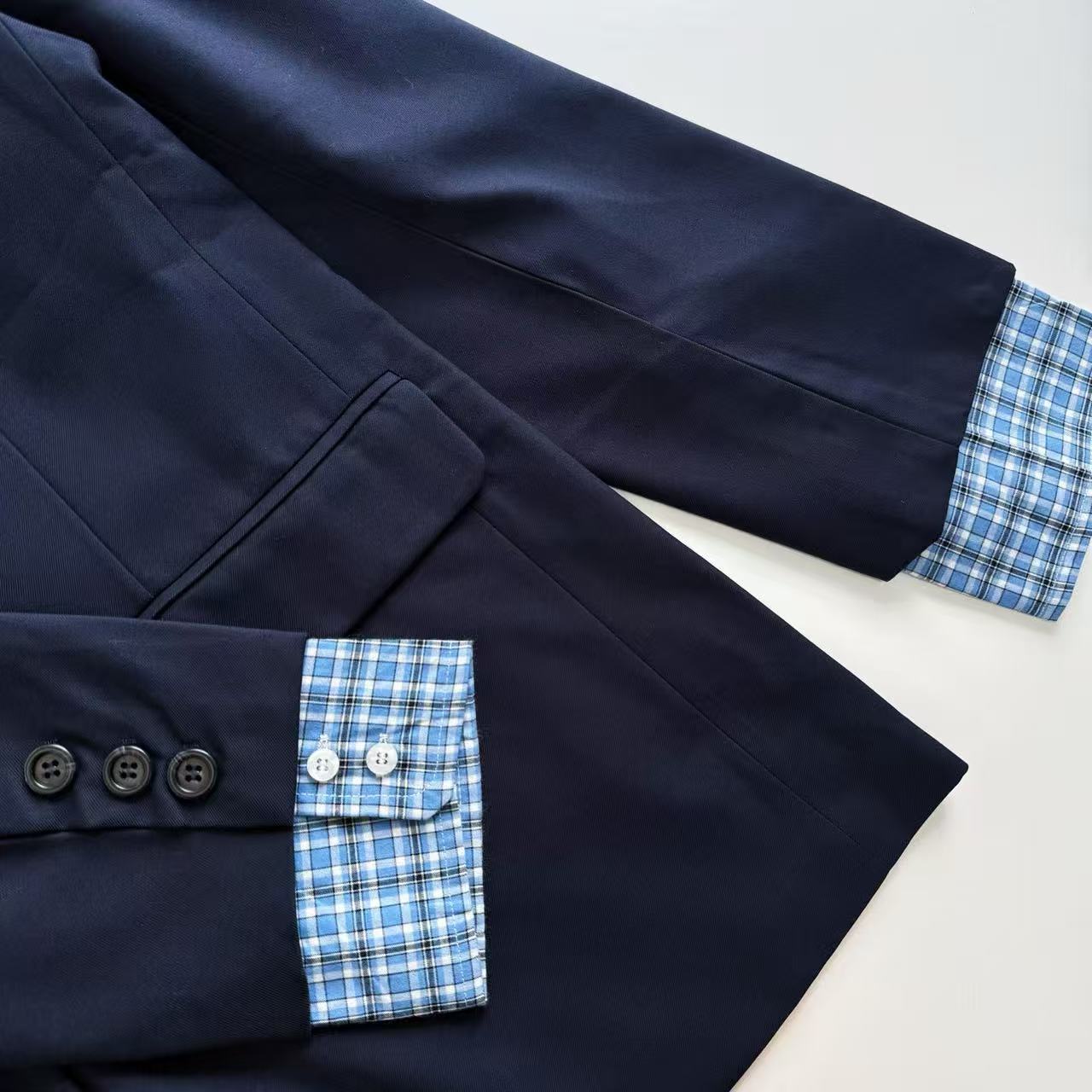 格子袖口:袖口的格子設計,為整件外套增添了一份設計感,讓你輕鬆穿出時髦又高級的感覺。