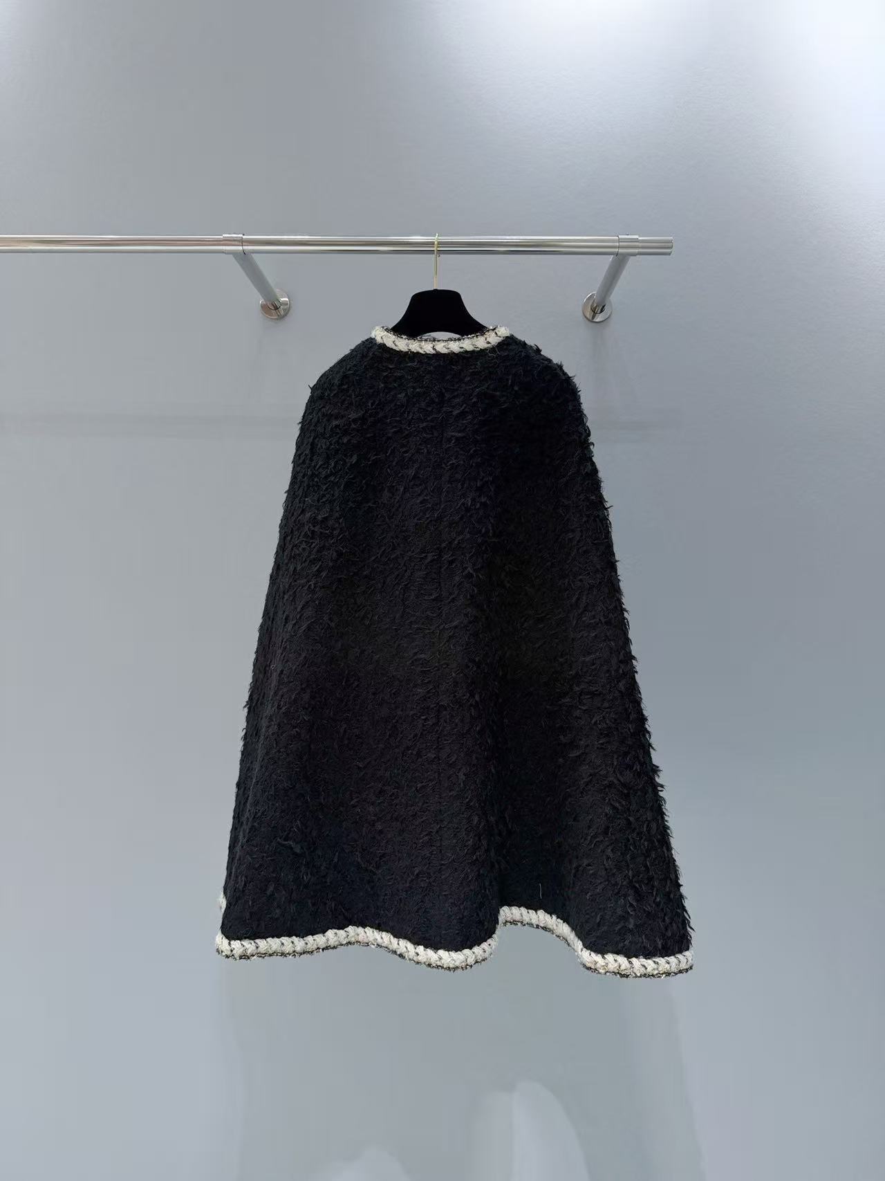 2025秋冬 C家 黑色粗花呢斗篷外套