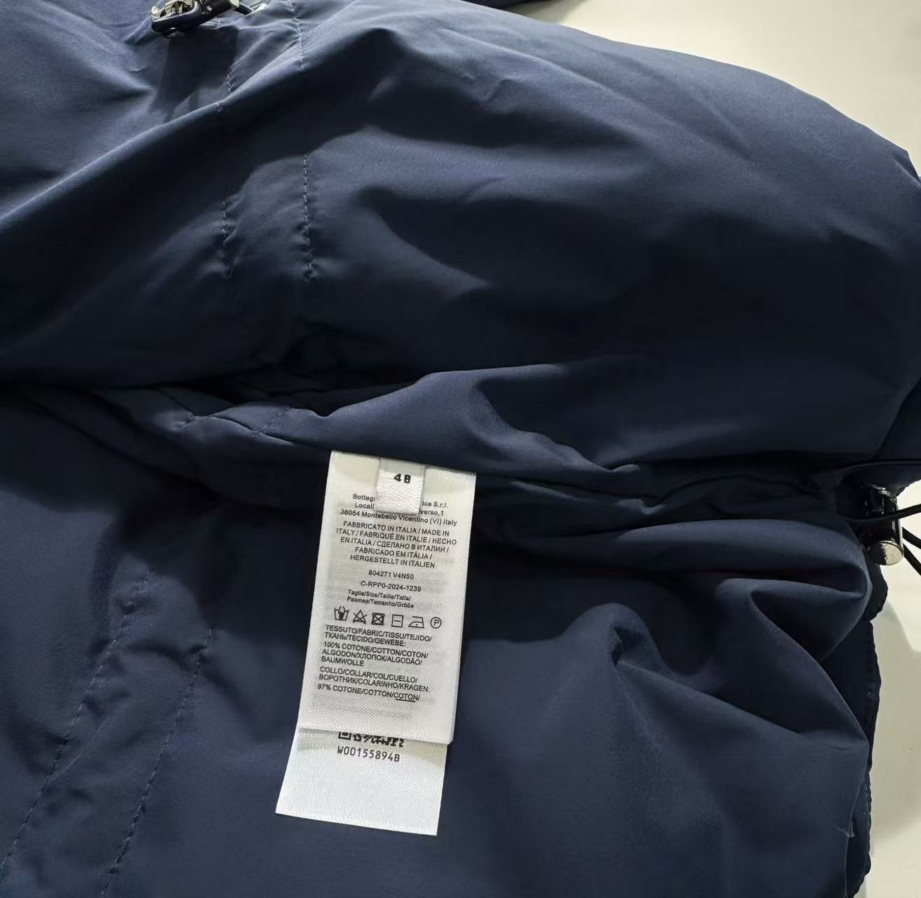 皮革編織拼接:品牌標誌性的編織裝飾,是透過精密的小羊皮貼片拼接工藝完成。將皮革牢固地縫製在棉質面料上,不僅考驗工匠的車縫穩定度,更讓衣服呈現出獨特的視覺深度。