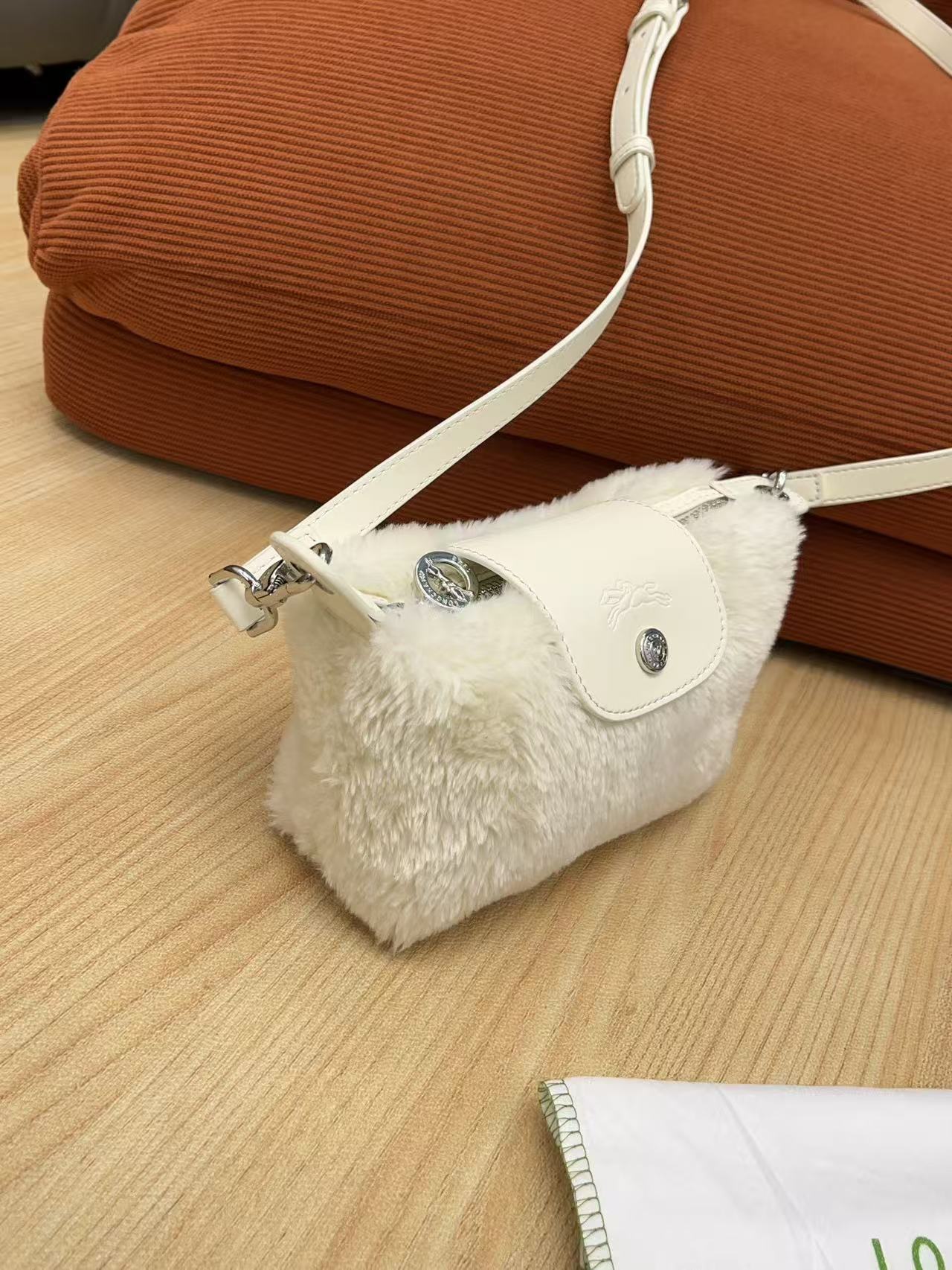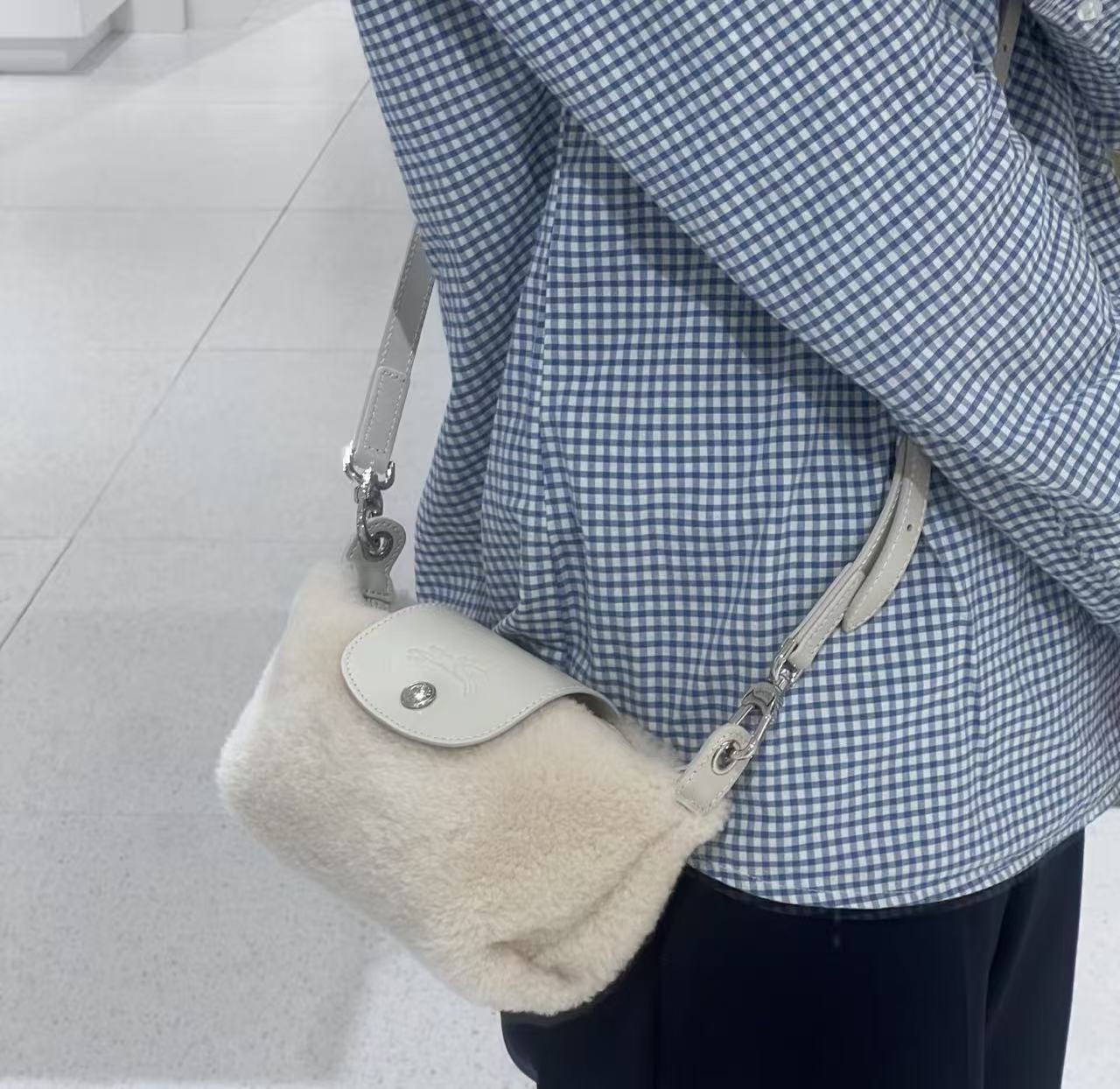 Mini 餃子包完美結合了時尚外觀和實用機能:羊羔毛萌感外觀: 包身覆蓋著柔軟的羊羔毛,充滿了秋冬的溫暖氛圍,一揹上身吸睛度滿分!