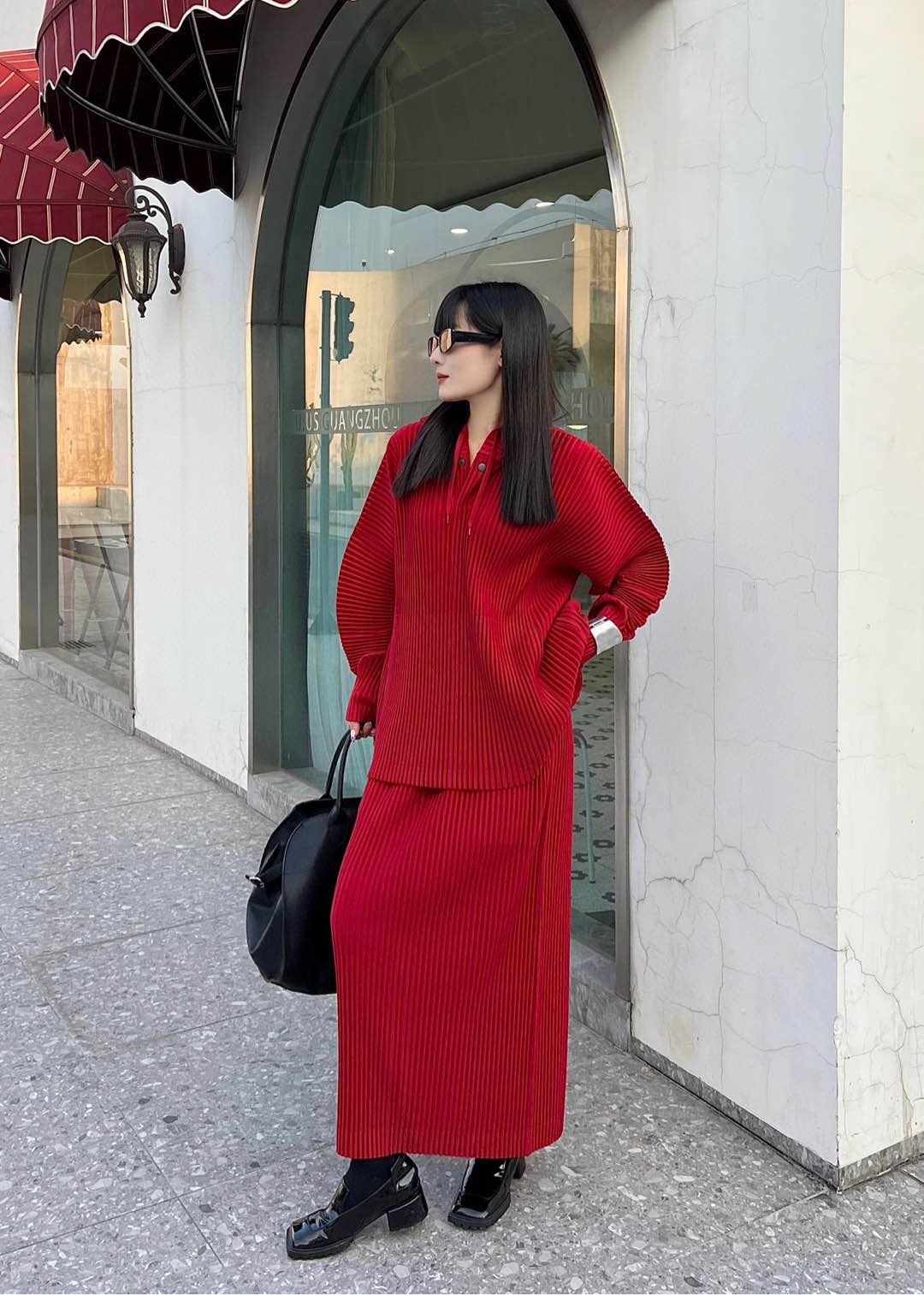 不止剪裁俐落,後開衩的設計更增添了一絲性感。穿上它,再搭配同款帽衫,就能輕鬆穿出時尚感。