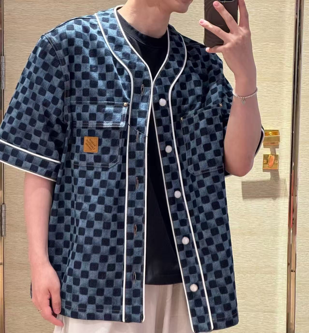 2025早秋新品 L家 棋盤格牛仔短袖襯衫