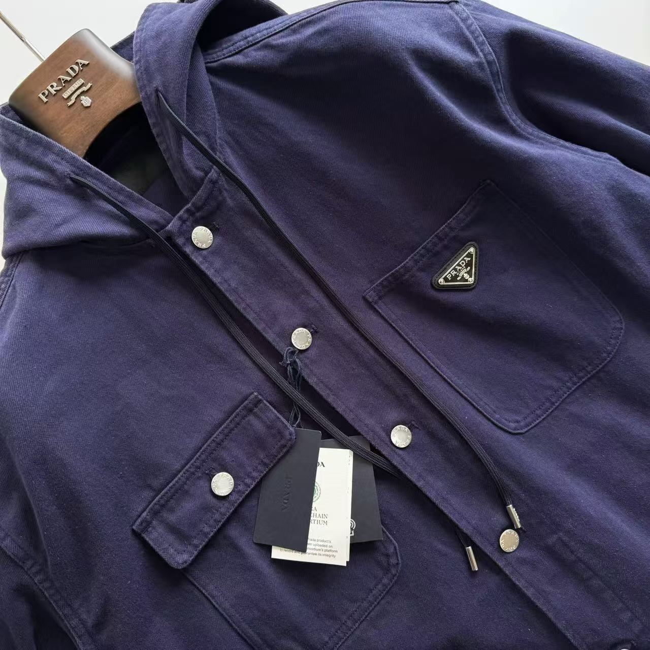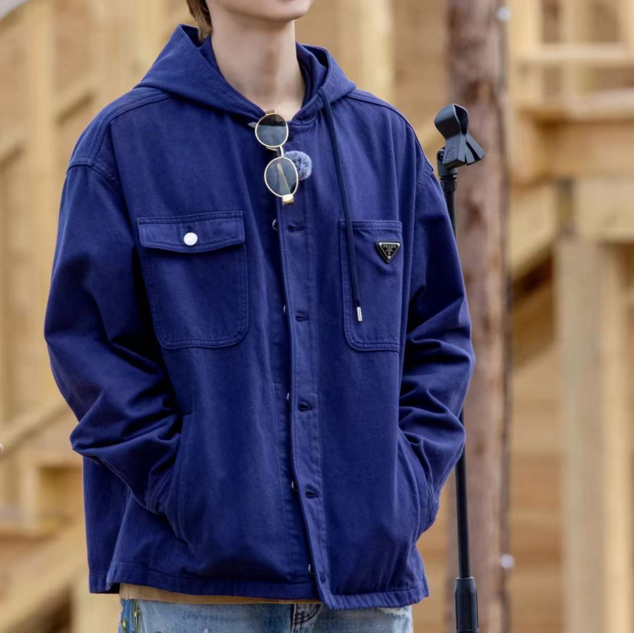 2025早秋新品 P家 三角標做舊連帽牛仔夾克