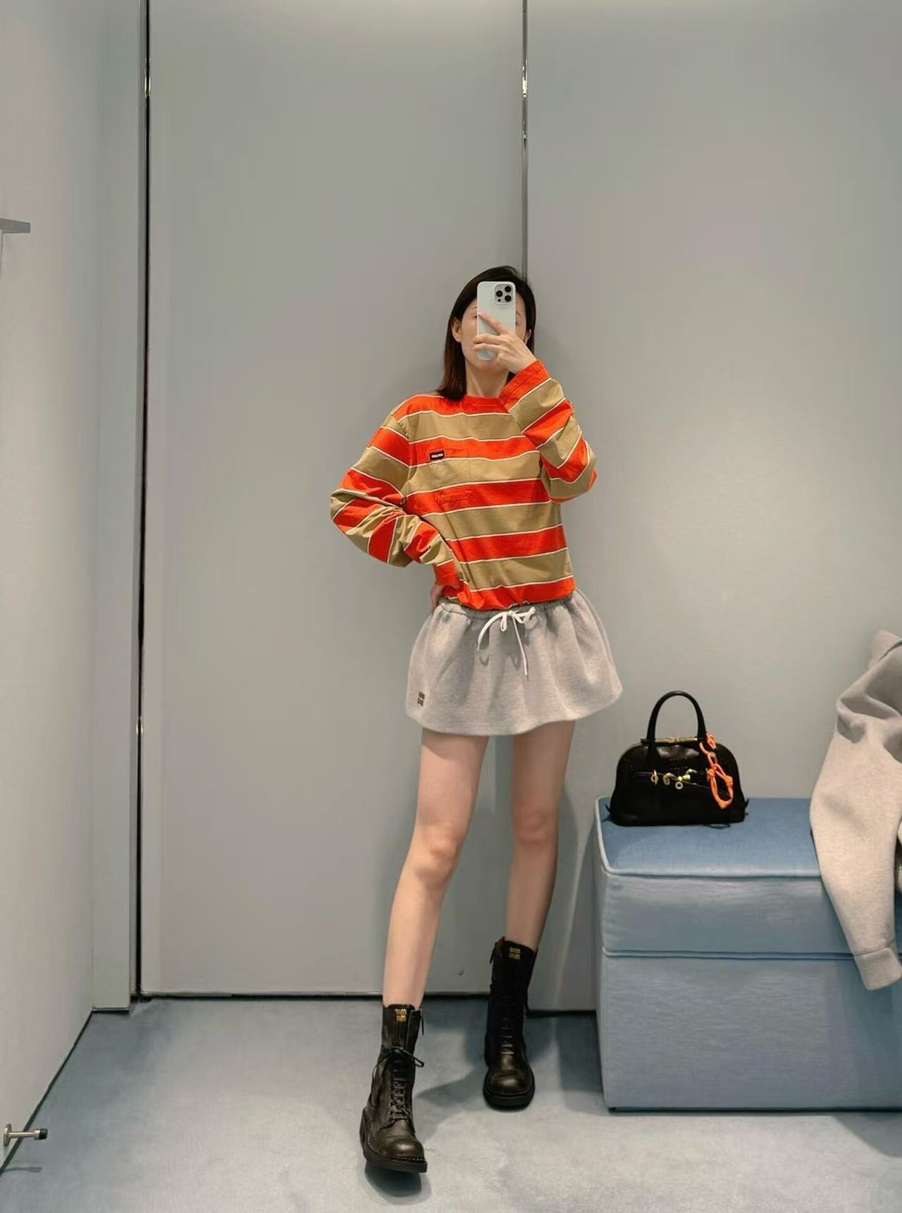 雙十一重磅特惠福利- Miu家 橙棕撞色條紋長袖
