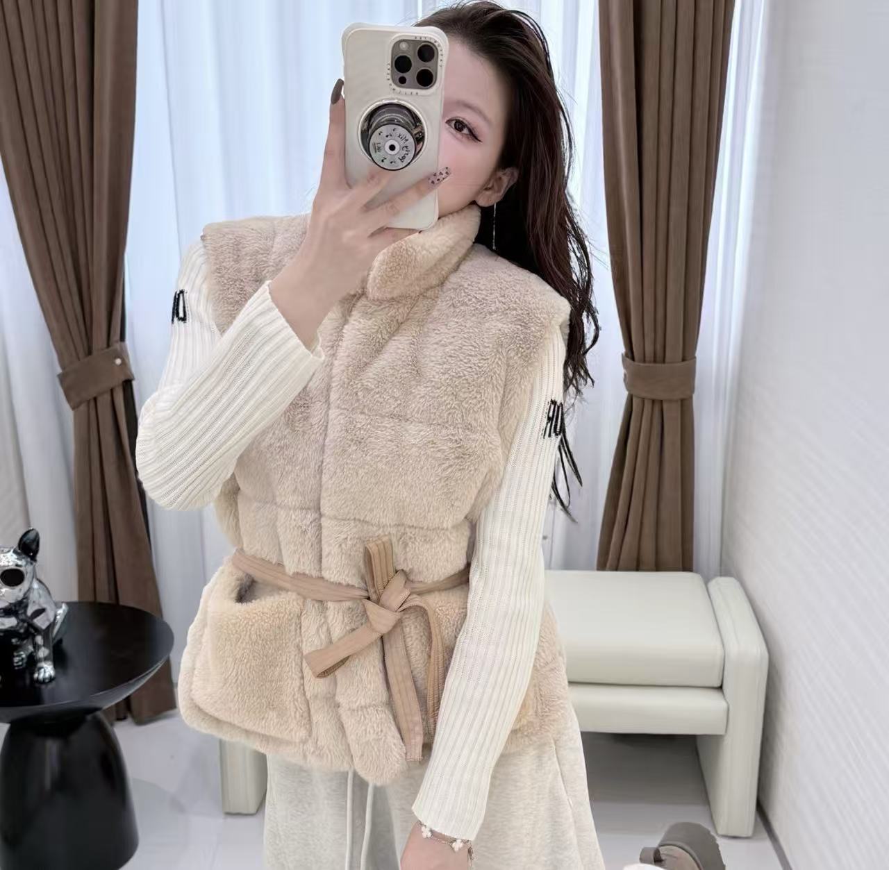 這款背心在選材上極為考究,致力於模擬頂級皮草的觸感與精品的穿著體驗: