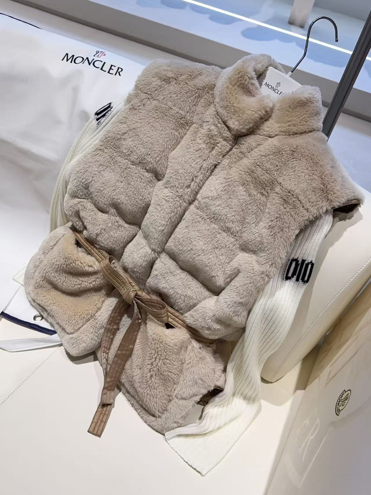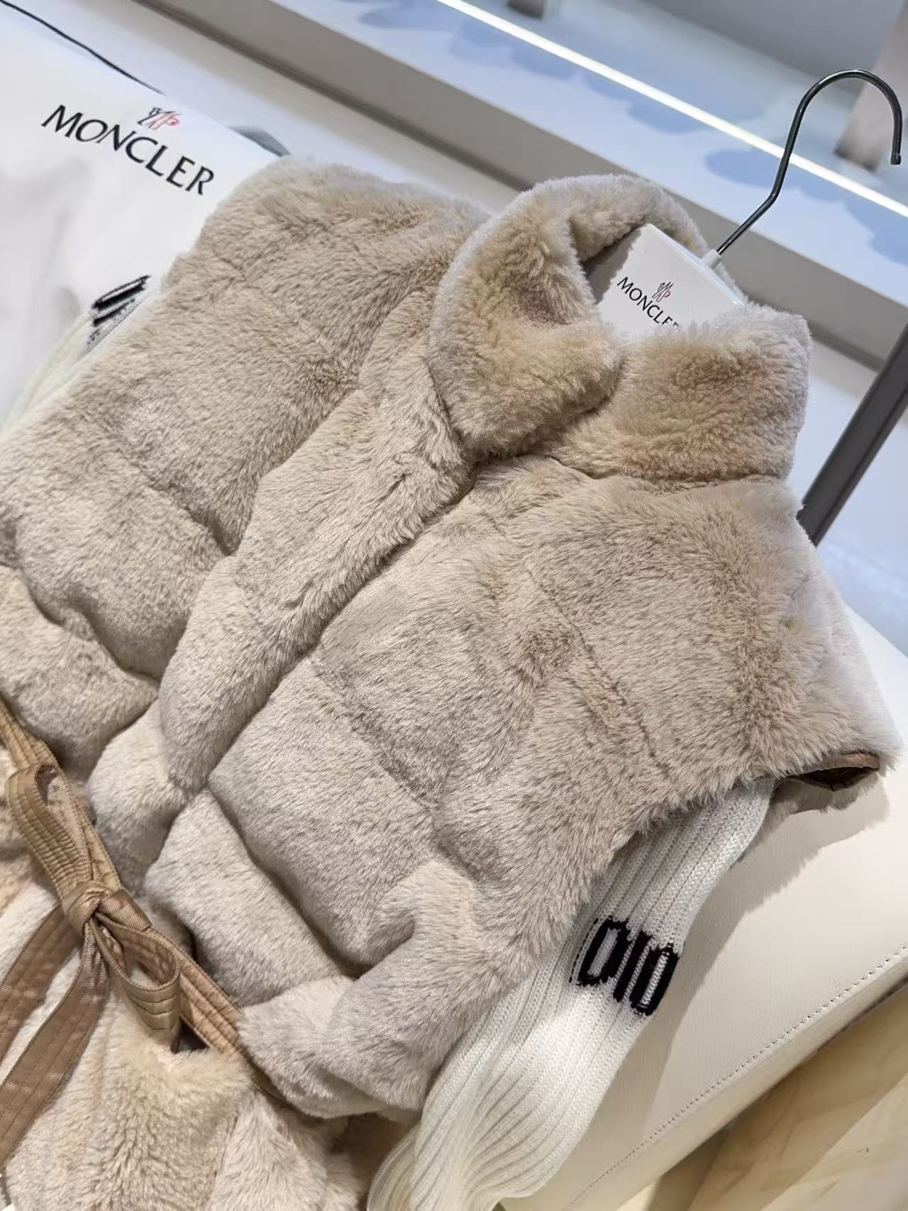 設計上巧妙地將仿皮草的奢華質感與高端羽絨的機能性結合,營造出一種內斂且高級的視覺層次。