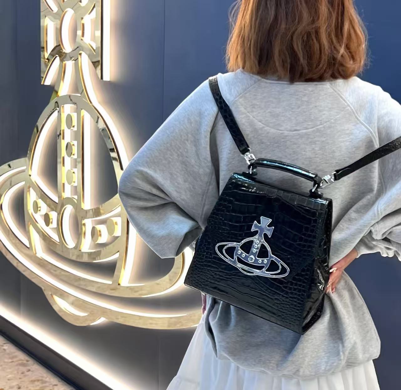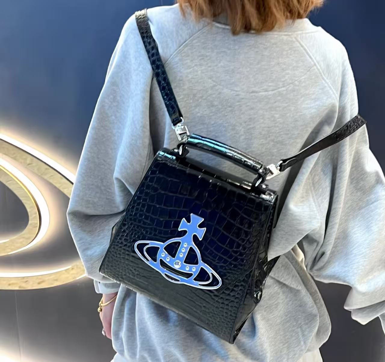 叛逆與學院的完美揉合:經典土星鱷魚紋雙肩包