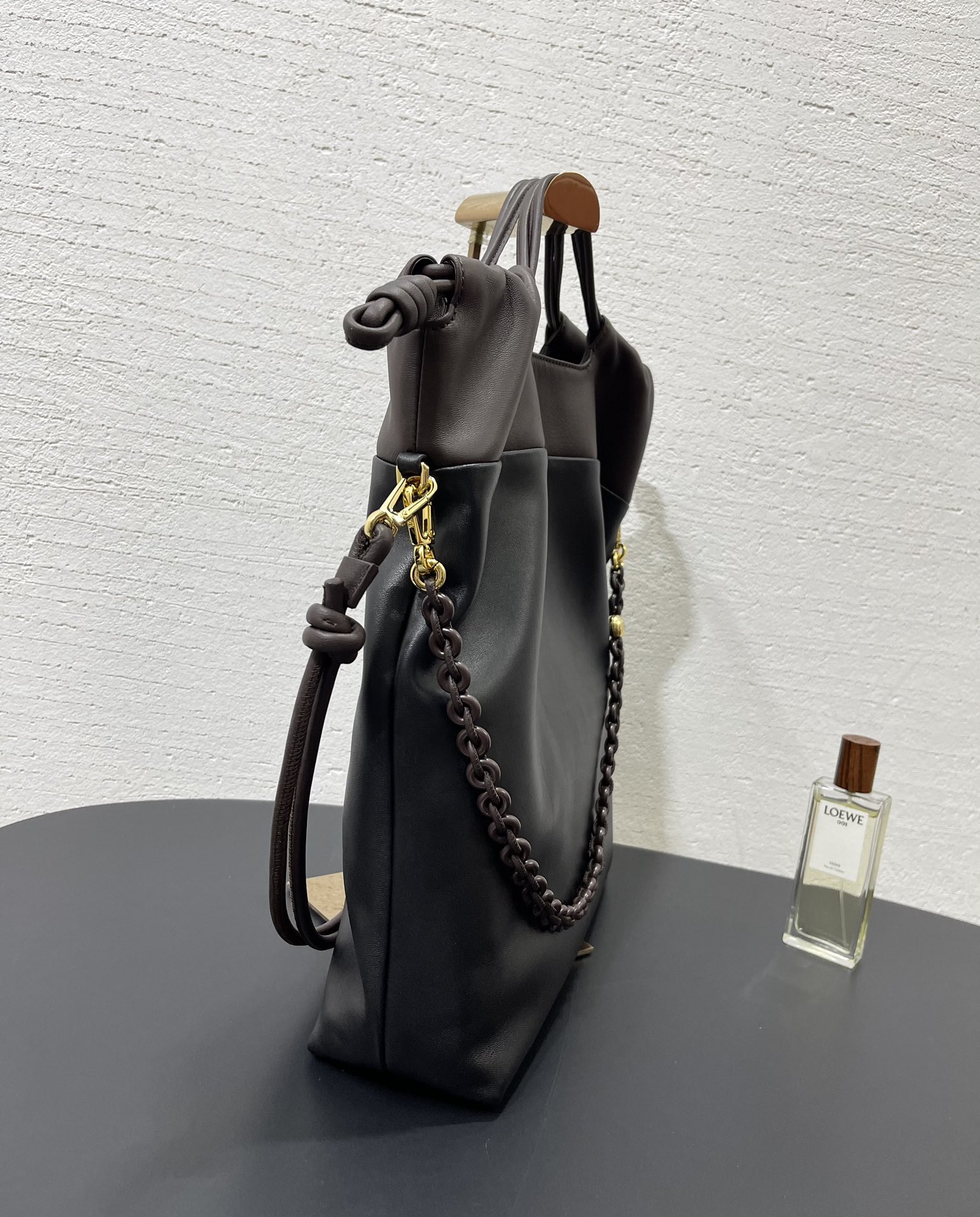側邊搭配品牌標誌性的繩結細節,低調中帶點設計巧思,慵懶卻不隨便,完全是那種「看起來很會穿搭」的包款。