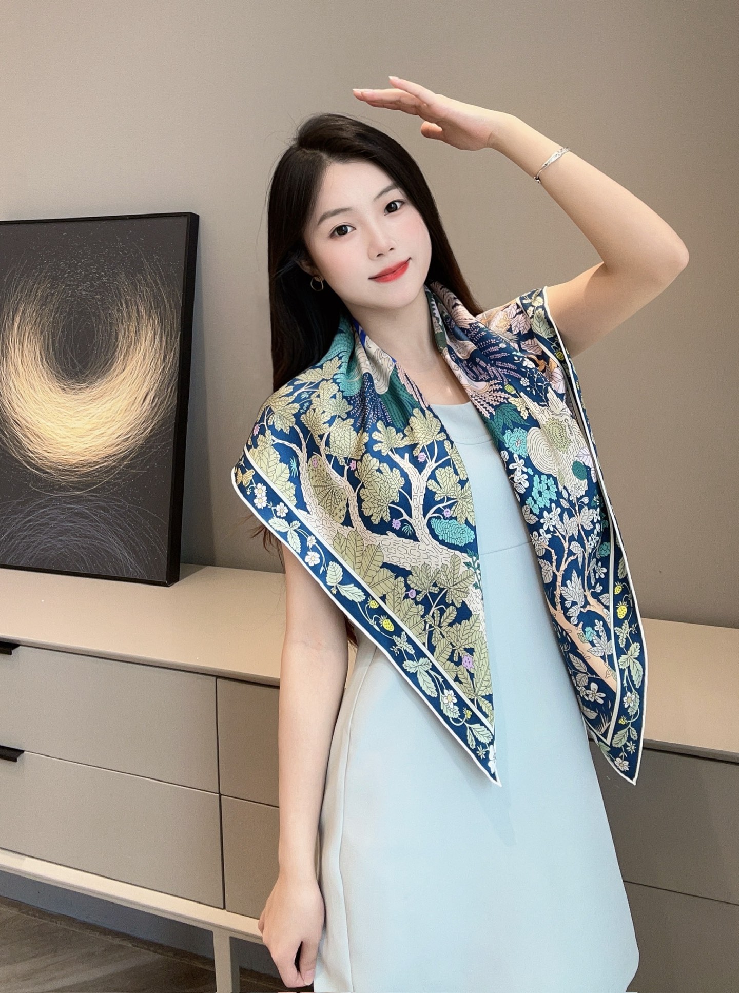 對我來說,它不只是一條絲巾,更像是一幅可以隨身佩戴的詩意畫作。
