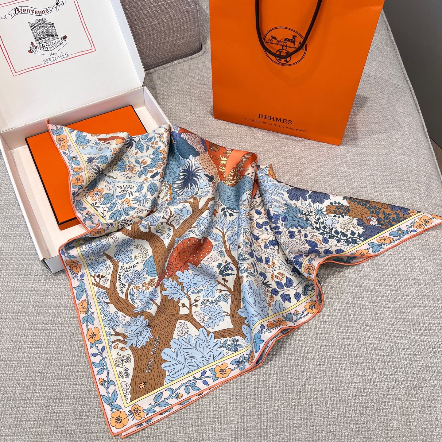 斜紋真絲本身就以柔軟、滑順又不失挺度著稱,垂墜感極佳,無論是繫在頸間、披在肩上,或作為包款裝飾,都能自然展現優雅線條。
