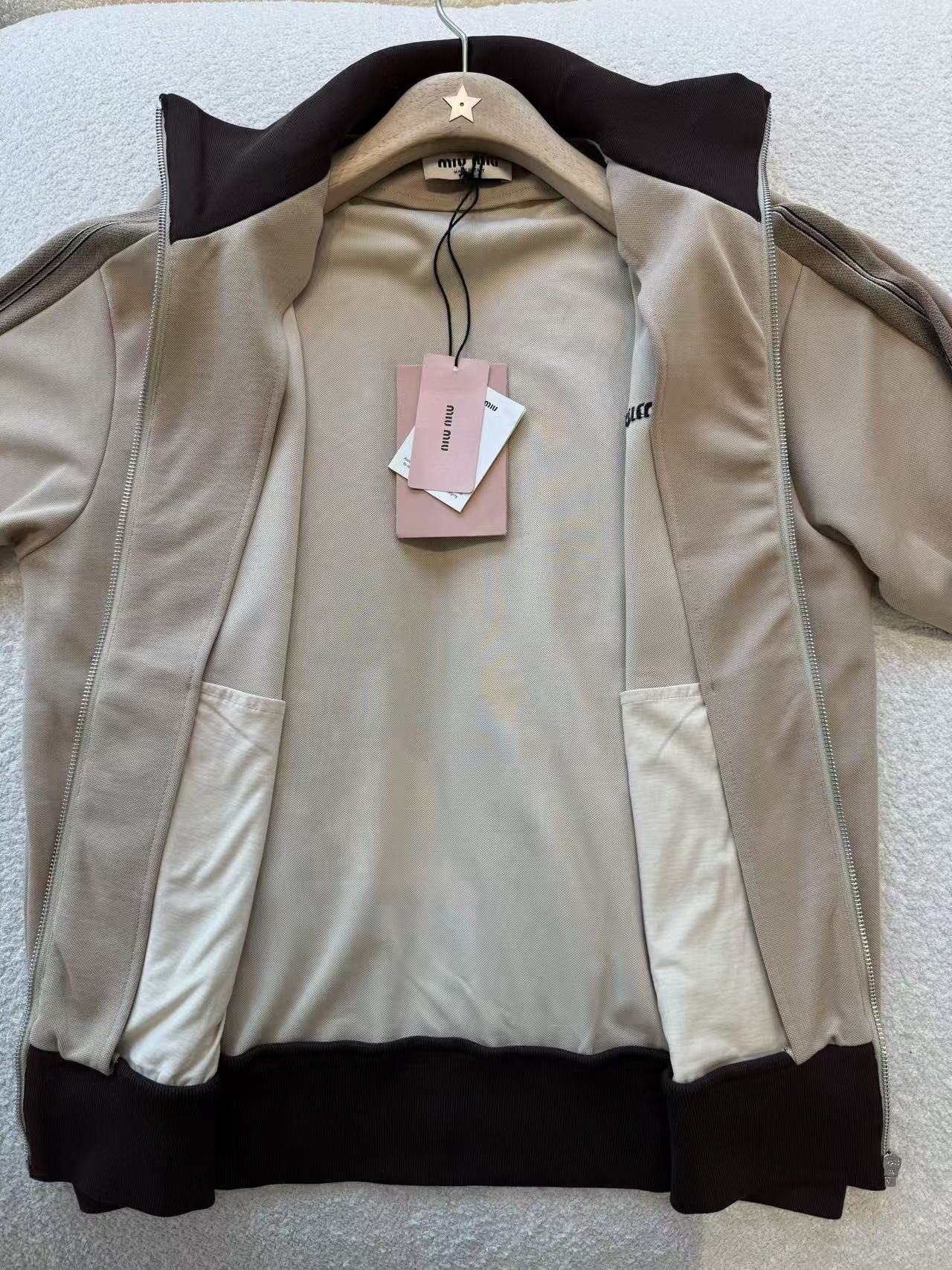 卡其+深棕配色復古滿分,聚酯纖維輕便+羅紋收口,從日常通勤到輕運動,一件搞定學院街頭!快來一起探索這件夾克的無限魅力吧!