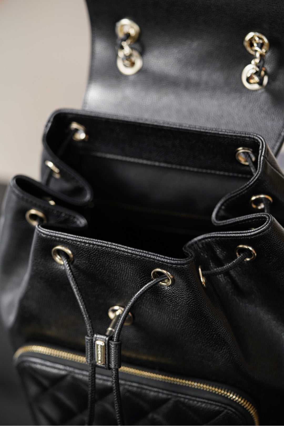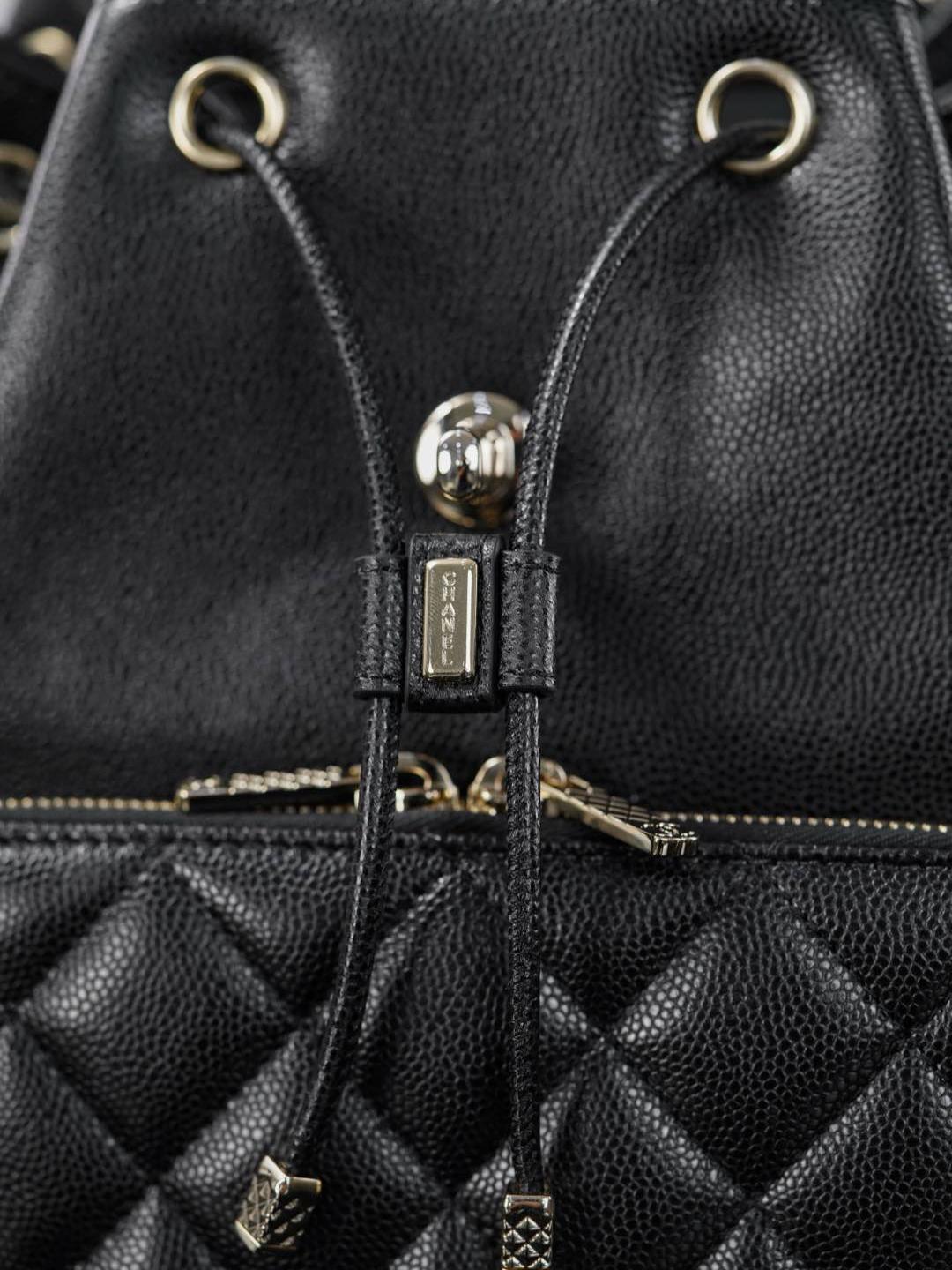整體設計保留了標誌性的菱格元素,無論是拉鍊拉牌還是皮質抽繩細節,都能看出對細節的極致講究。