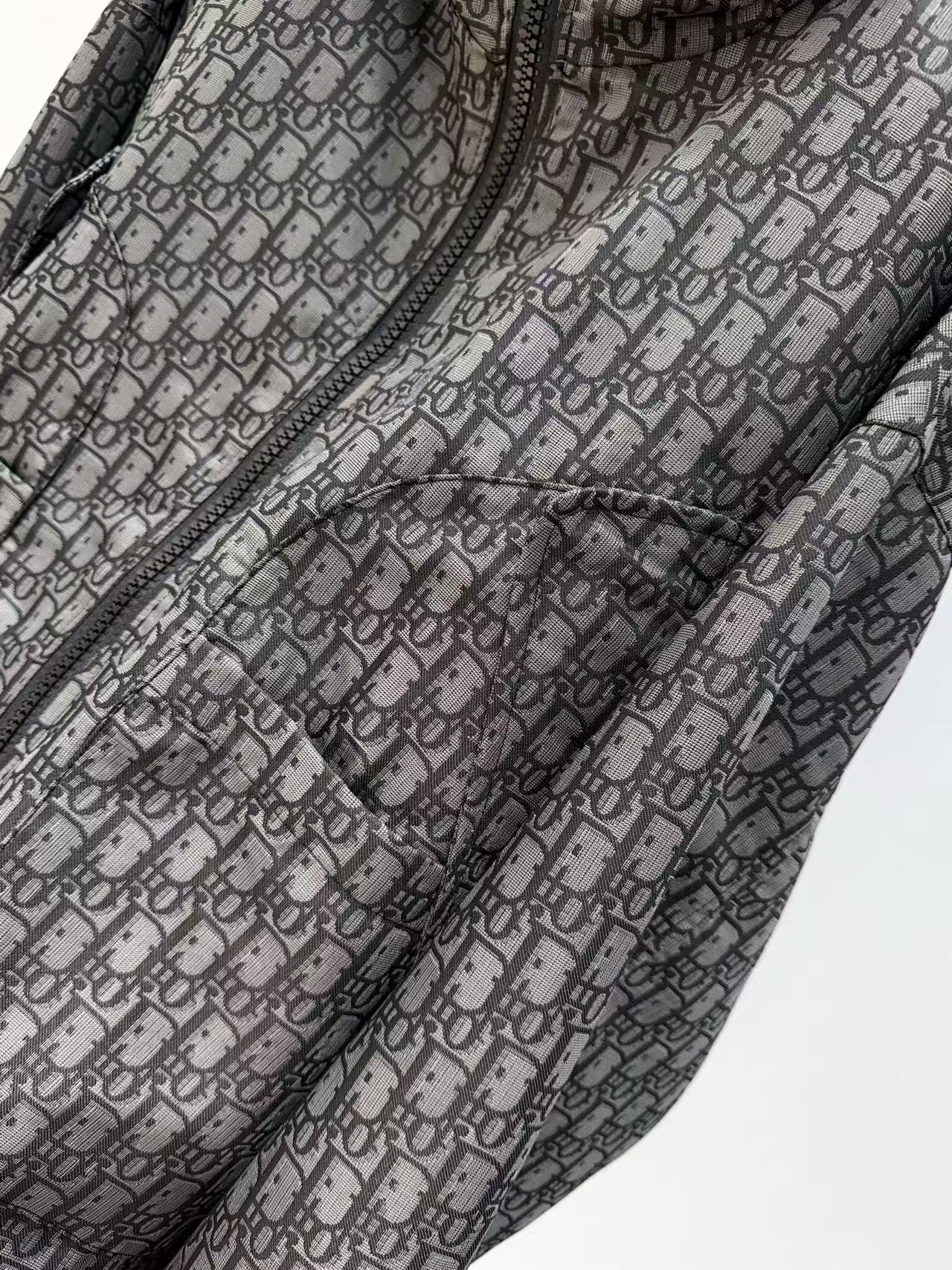 採用定制YB進口提花衝鋒材質,質感光澤挺括,滿版老錢感字母提花呼應上下,連帽抽繩+開襟拉鍊+魔術貼可調袖口,穿脫方便又實用。