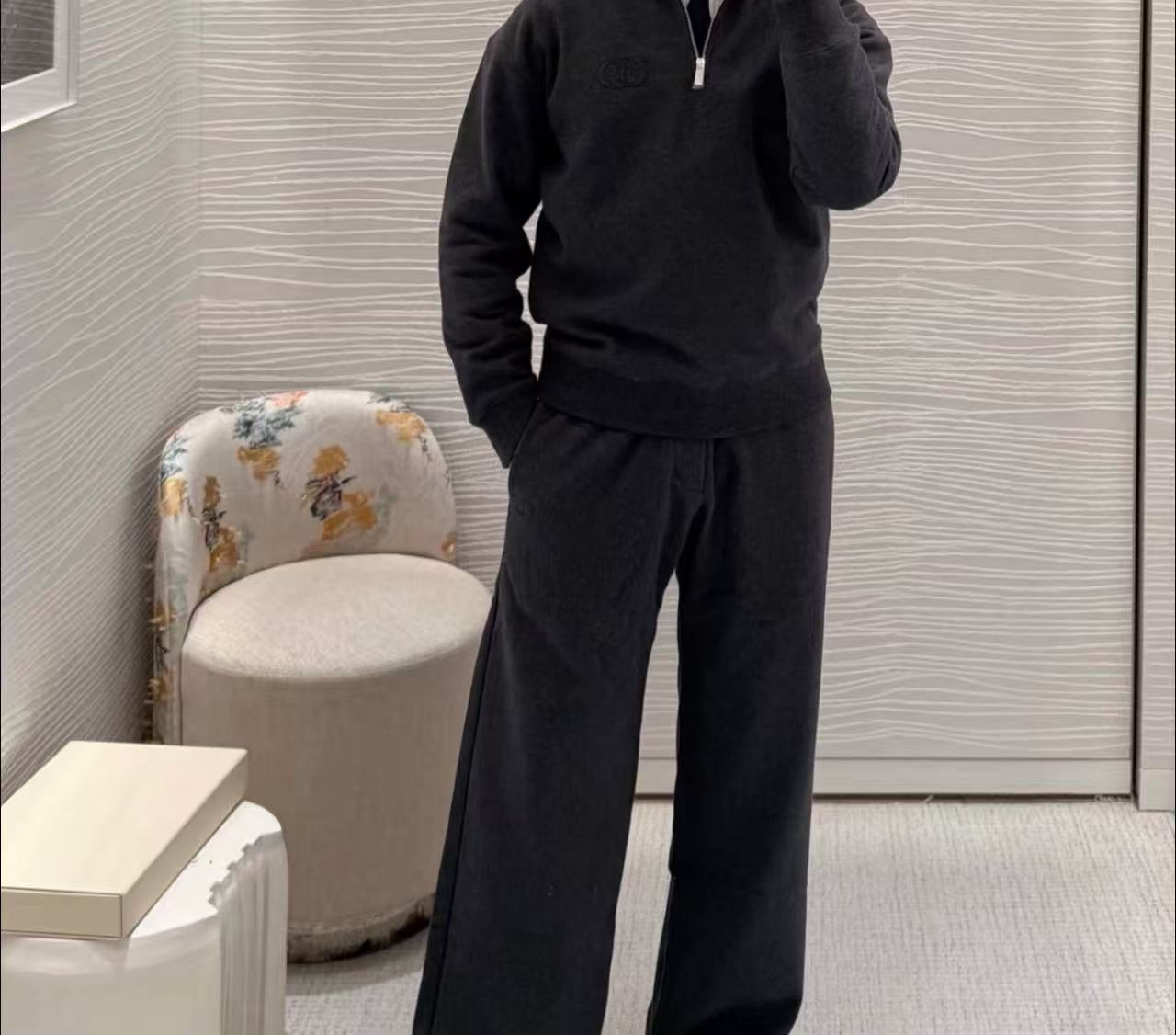 25秋冬系列這款長褲,將經典的 CD 標識透過創新的凸版壓花工藝重新轉化,在簡約的運動輪廓中植入極具立體感的視覺核心。