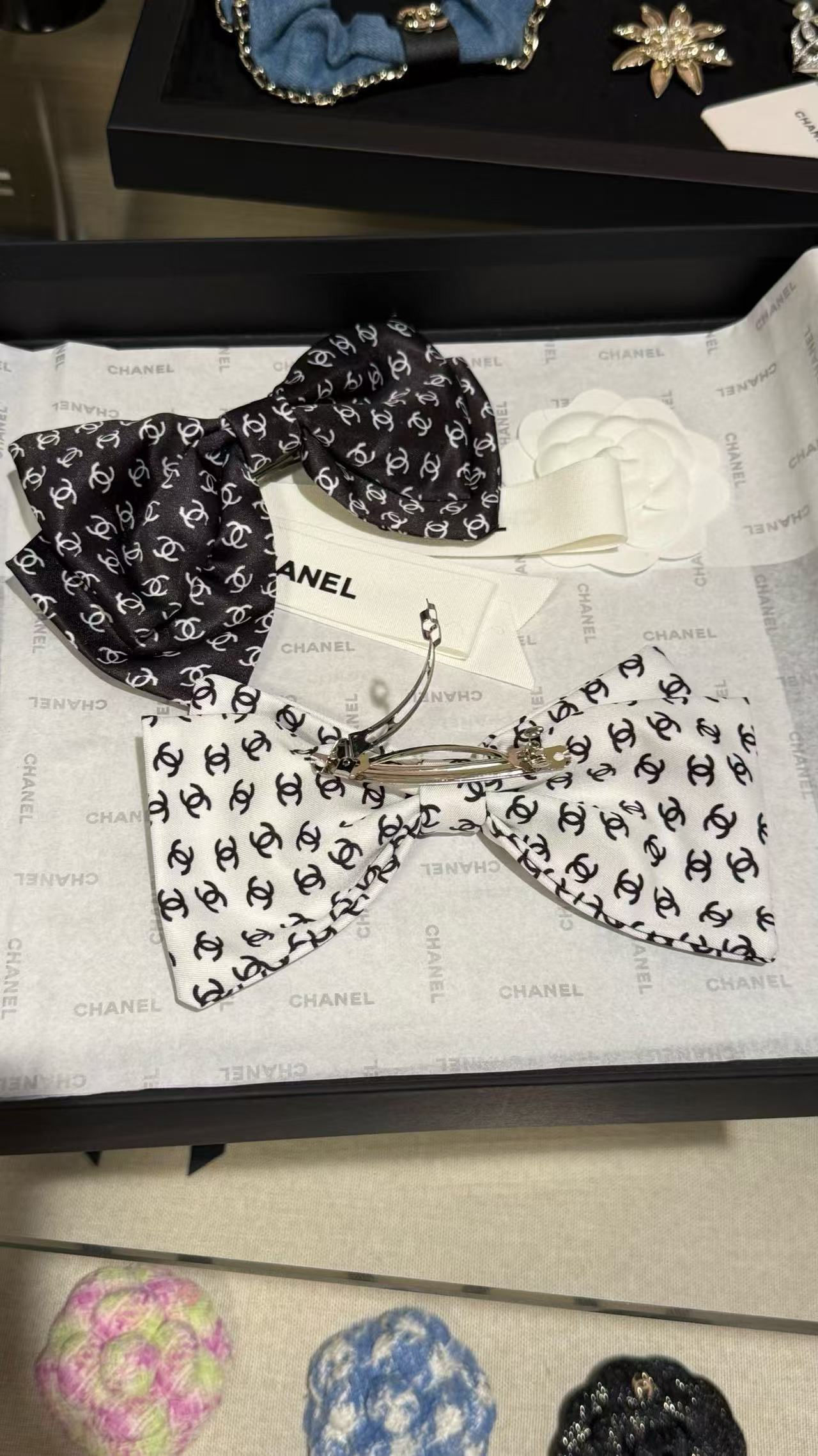 2025春夏 C家 緞面蝴蝶結雙 C 髮夾