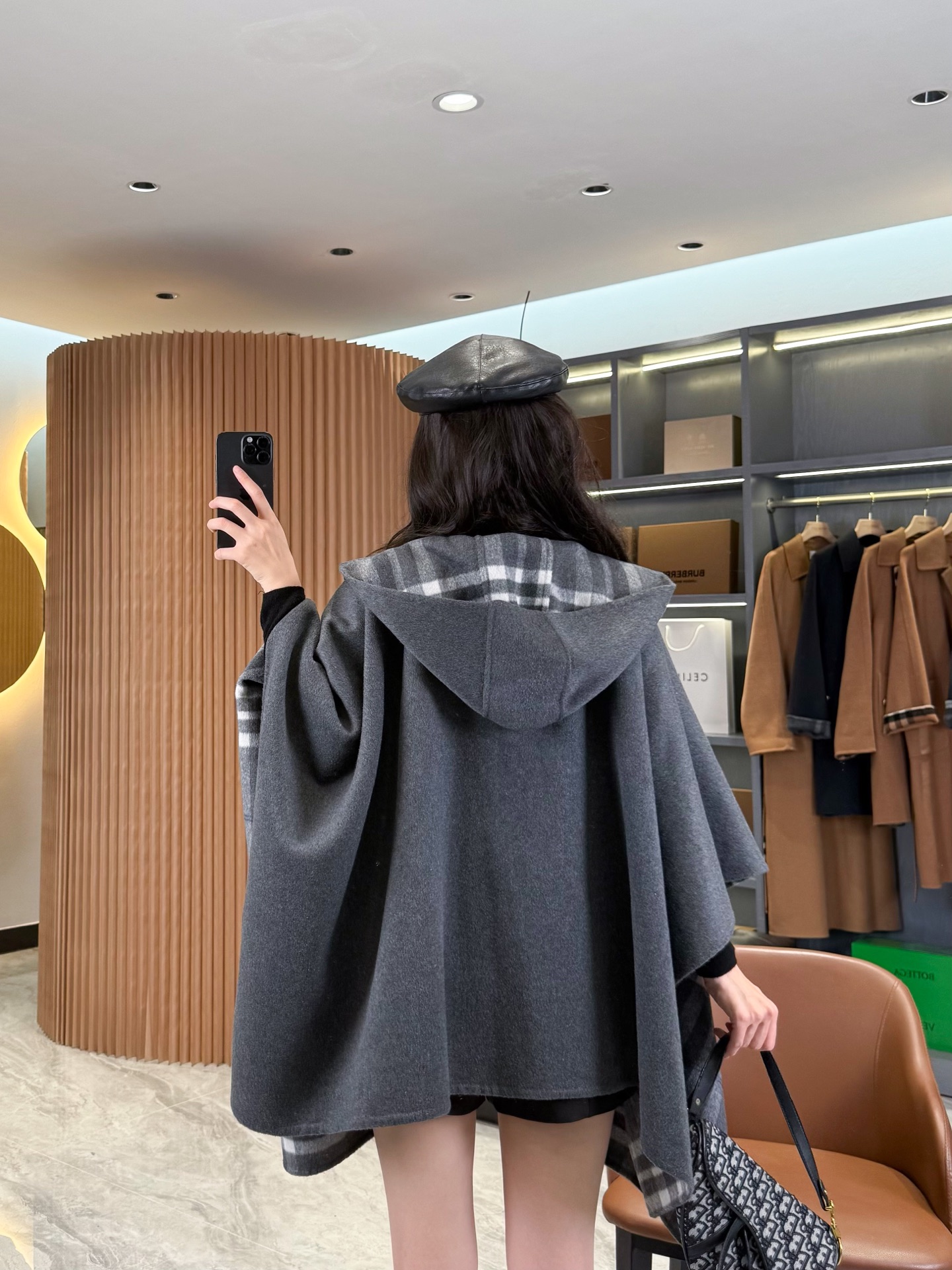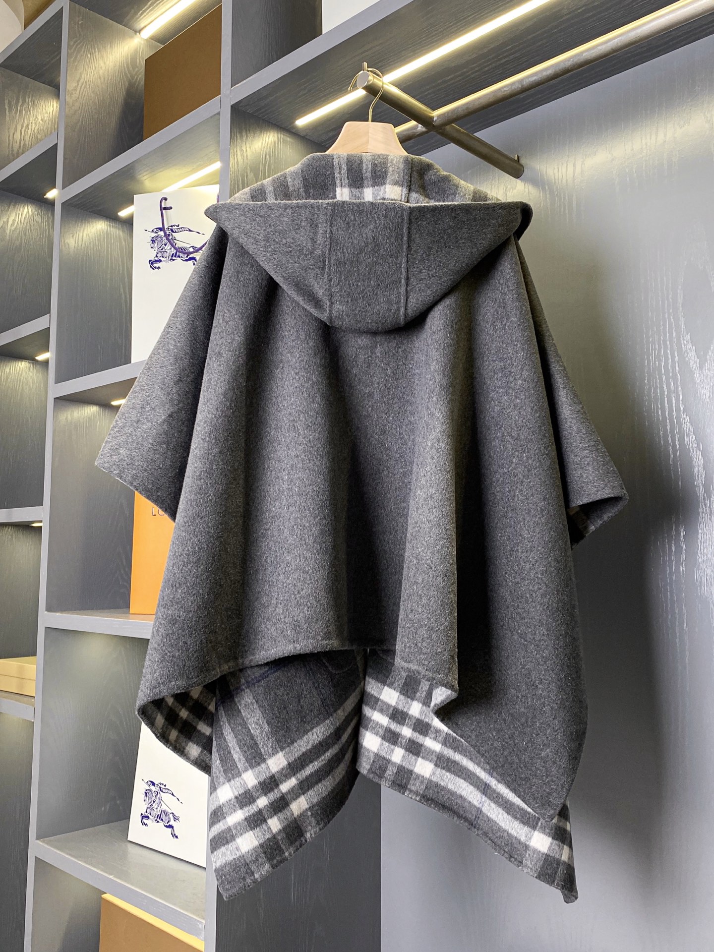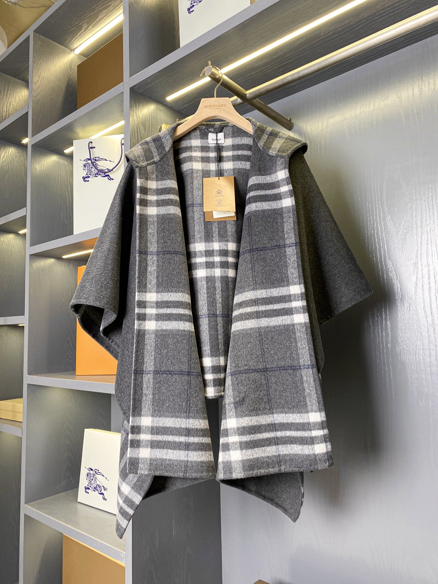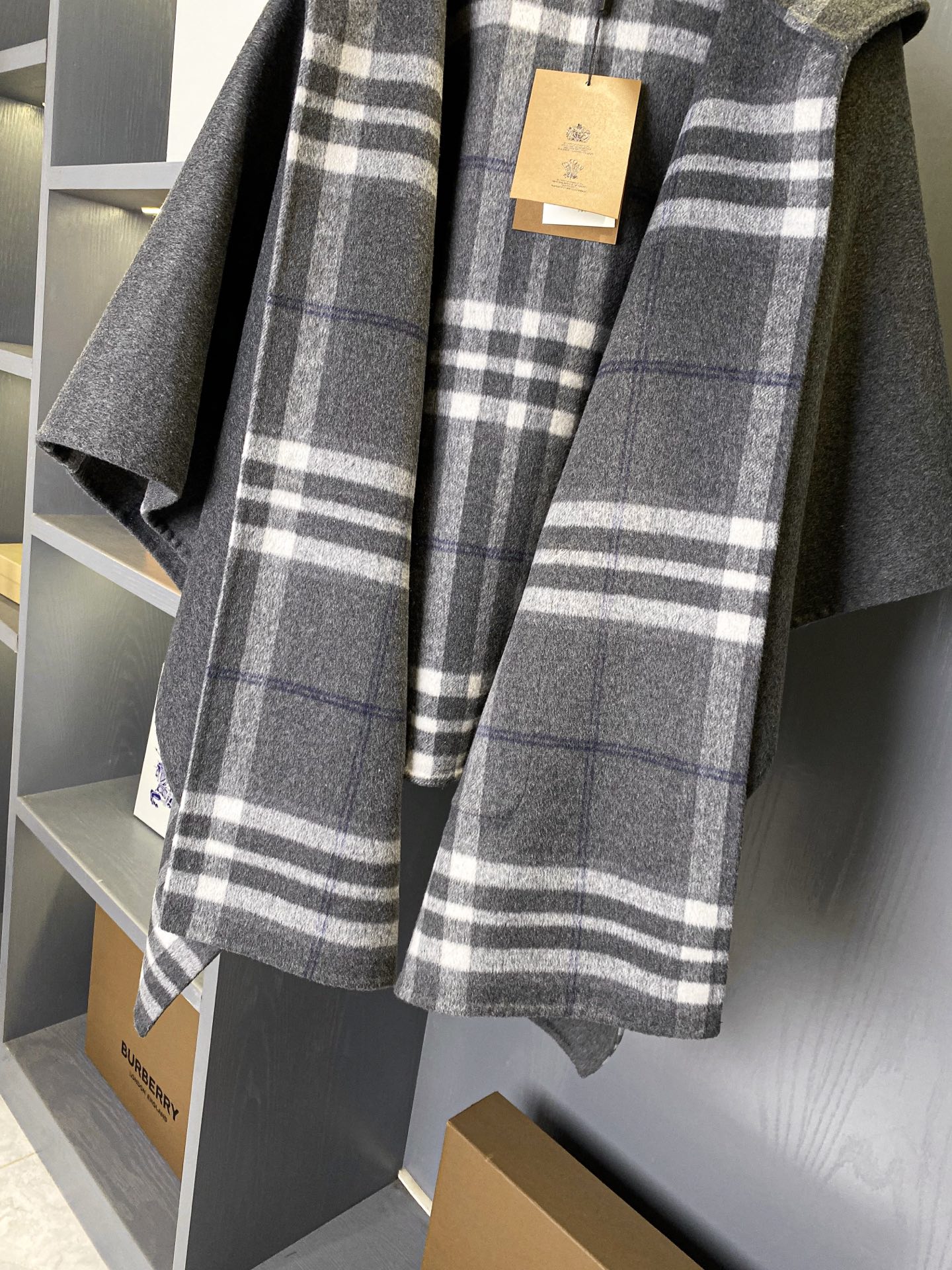 2025秋冬新品 BUR家 灰格紋羊毛斗篷