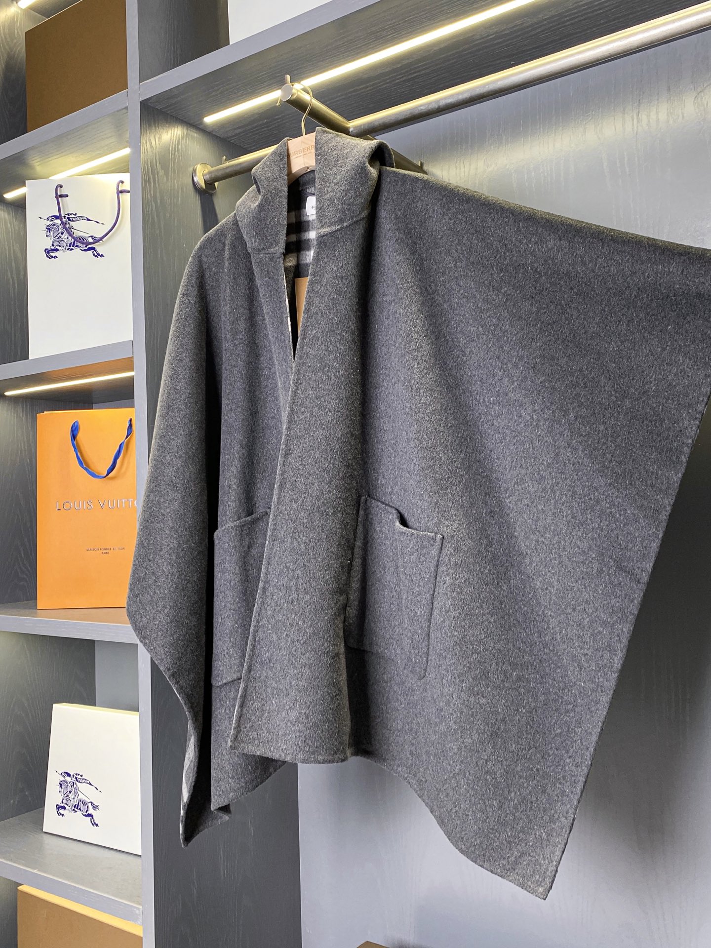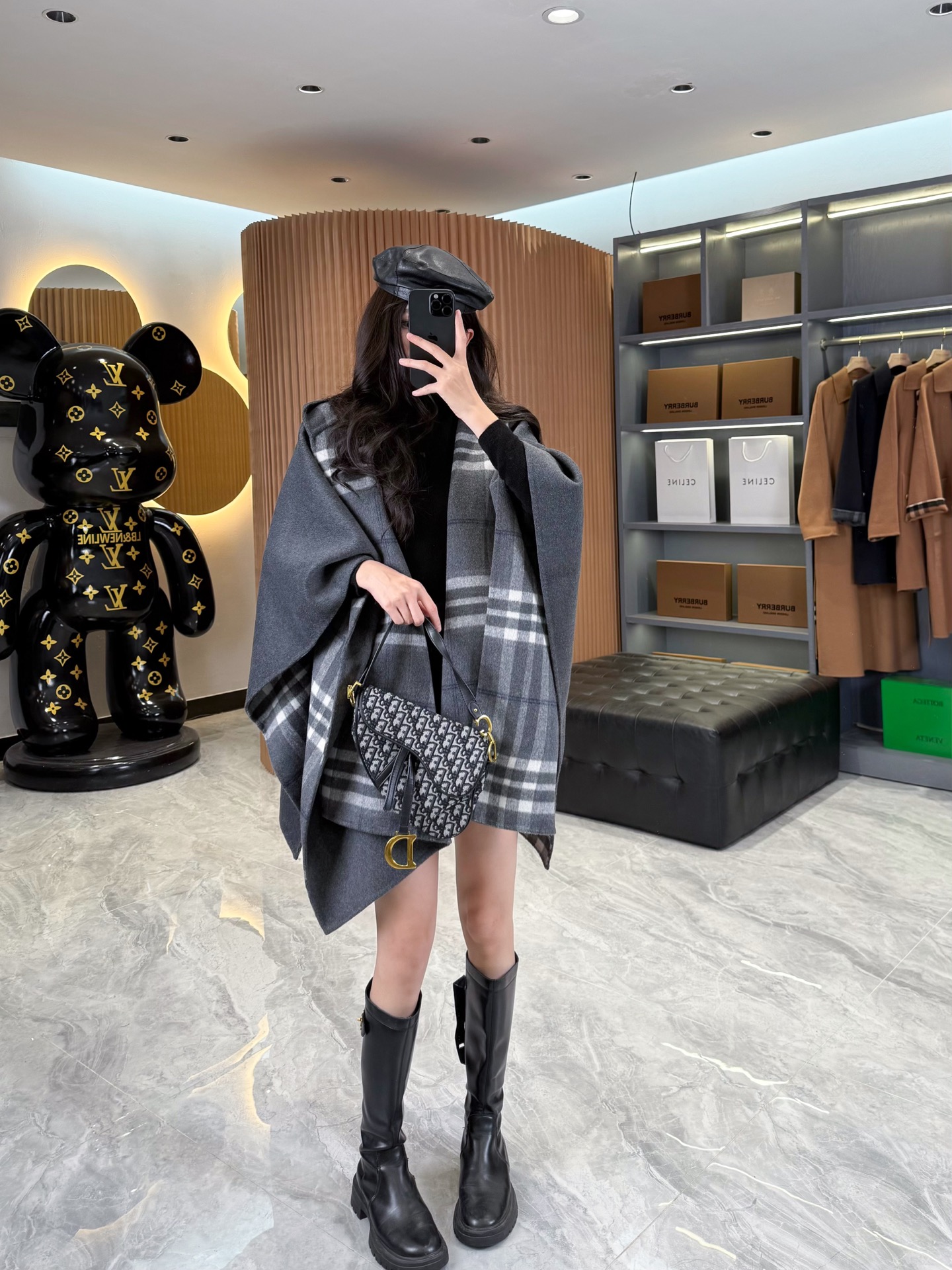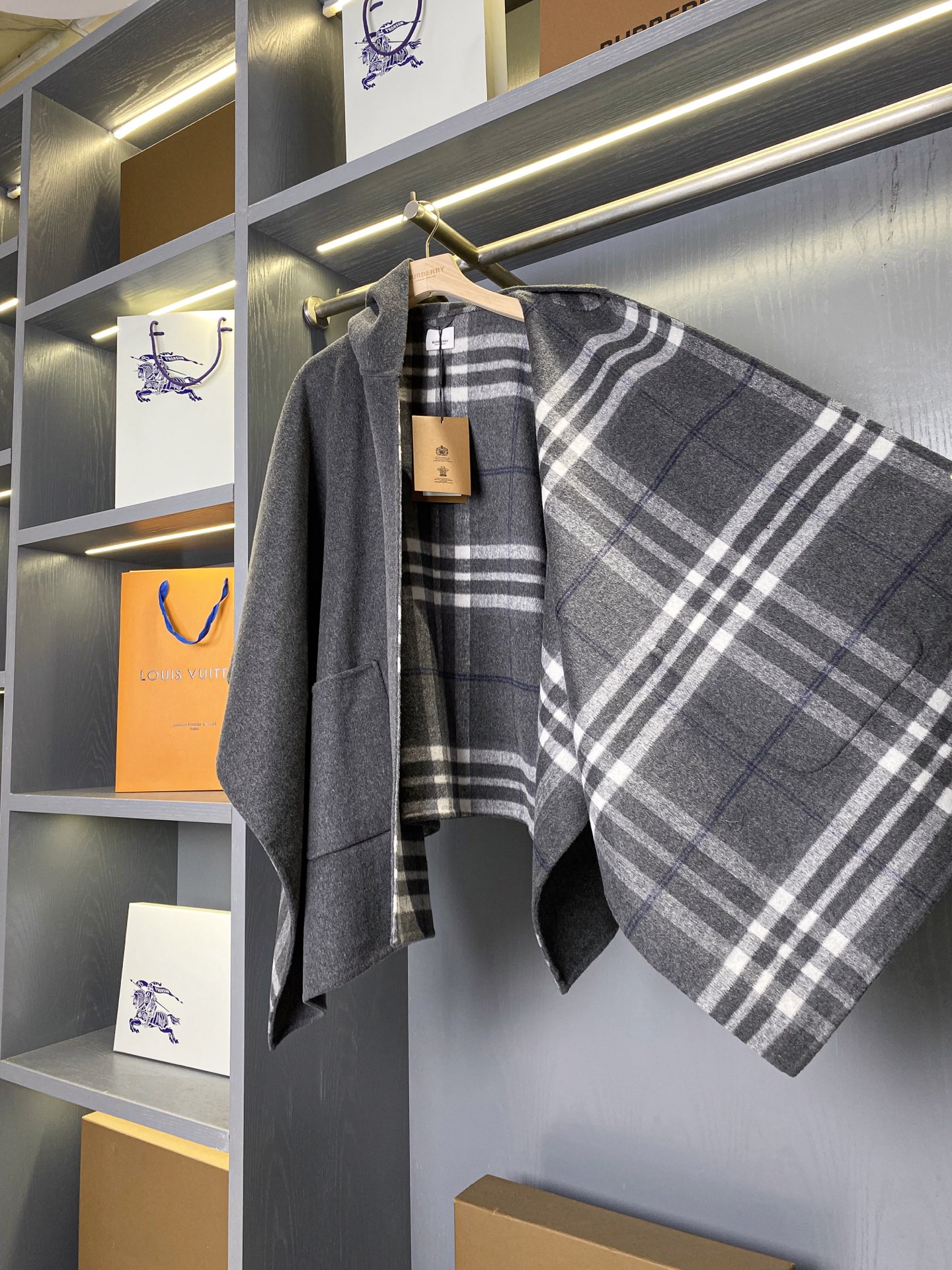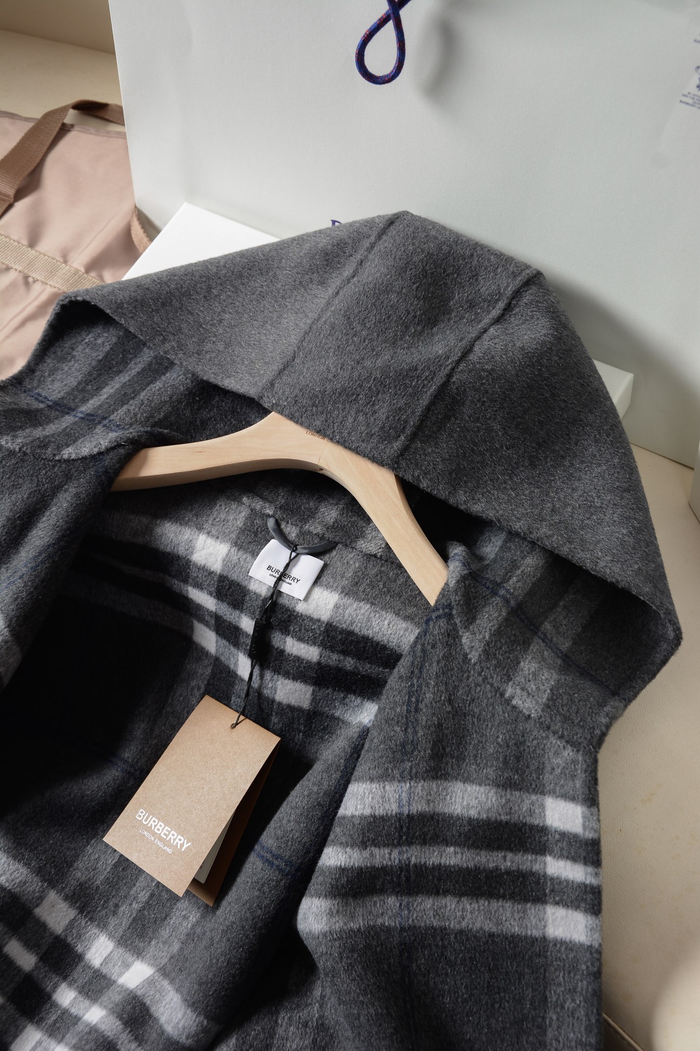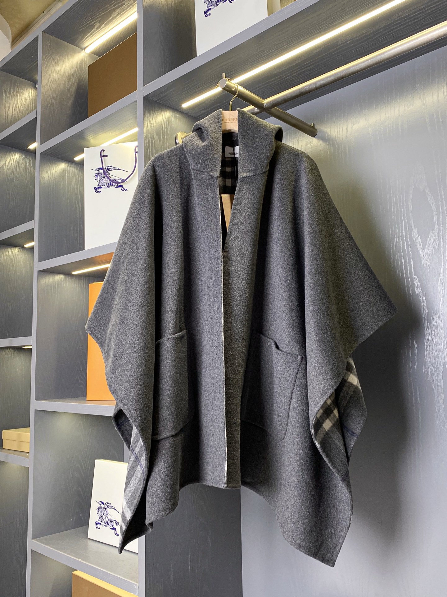 2025秋冬新品 BUR家 灰格紋羊毛斗篷