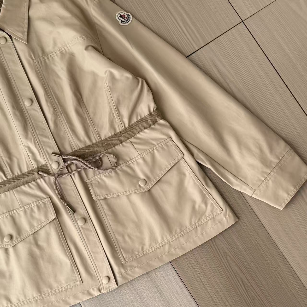可調節設計:腰部和衣袖都設有抽繩,可以根據你的穿搭需求來調整,讓你看起來更有型。