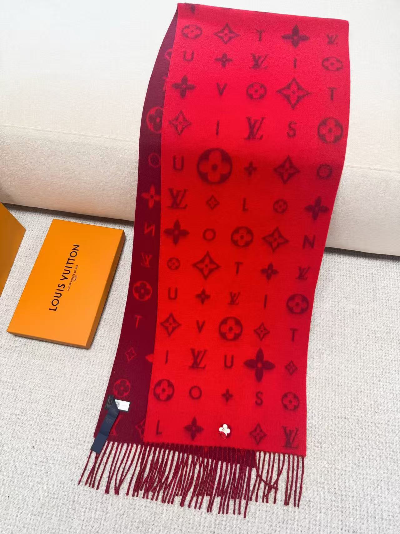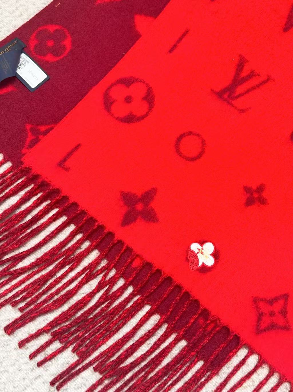 這款圍巾以經典 Monogram 花卉圖案為基礎,加入品牌名稱的單一字母與 W 字母刺繡點綴,呈現出更摩登的風貌。