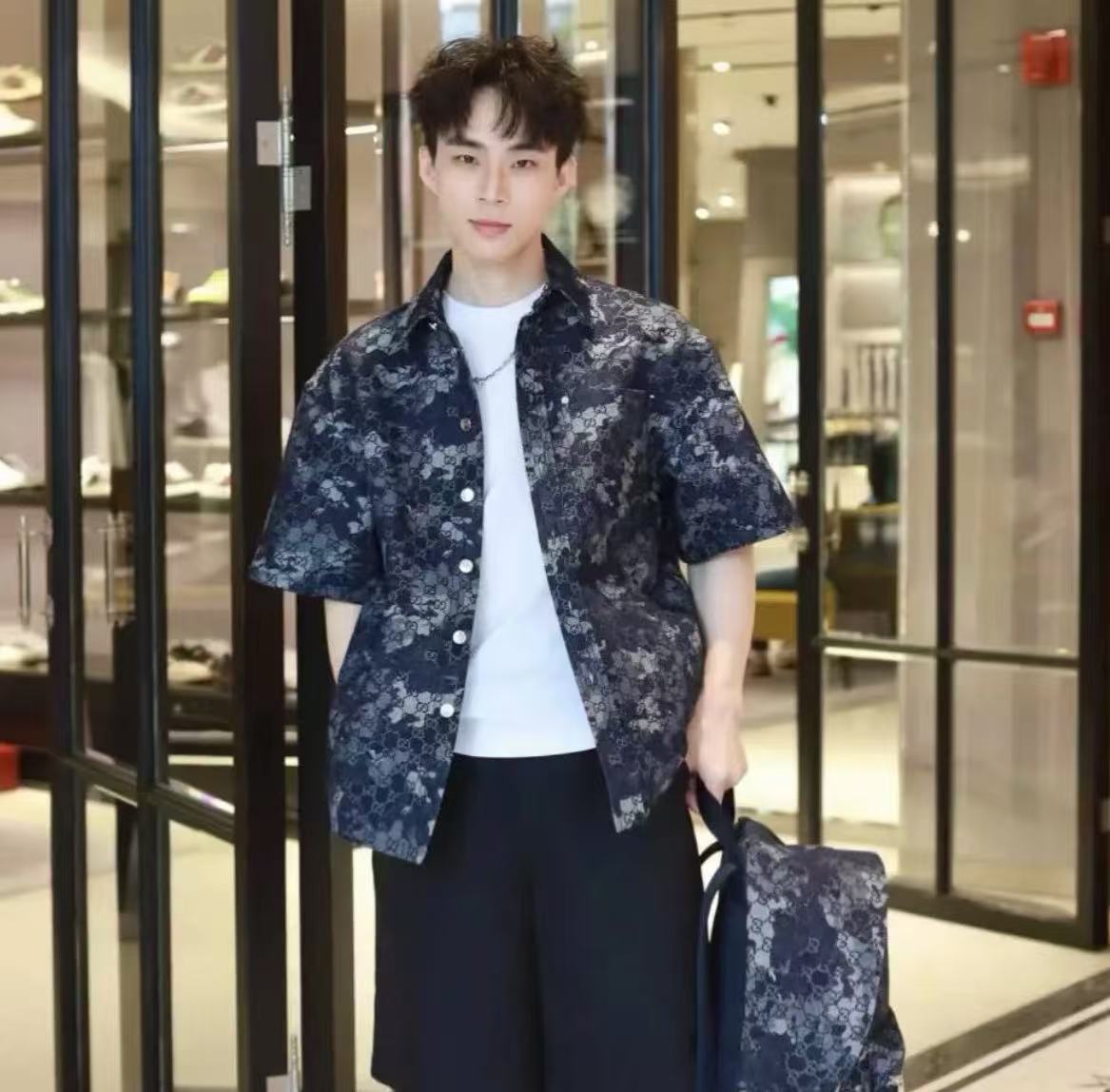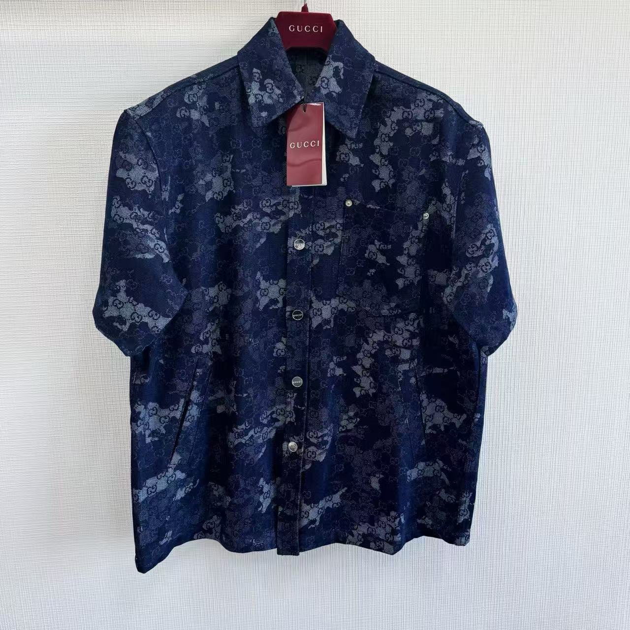 2025早秋新品 G家 雙G提花牛仔短袖襯衫