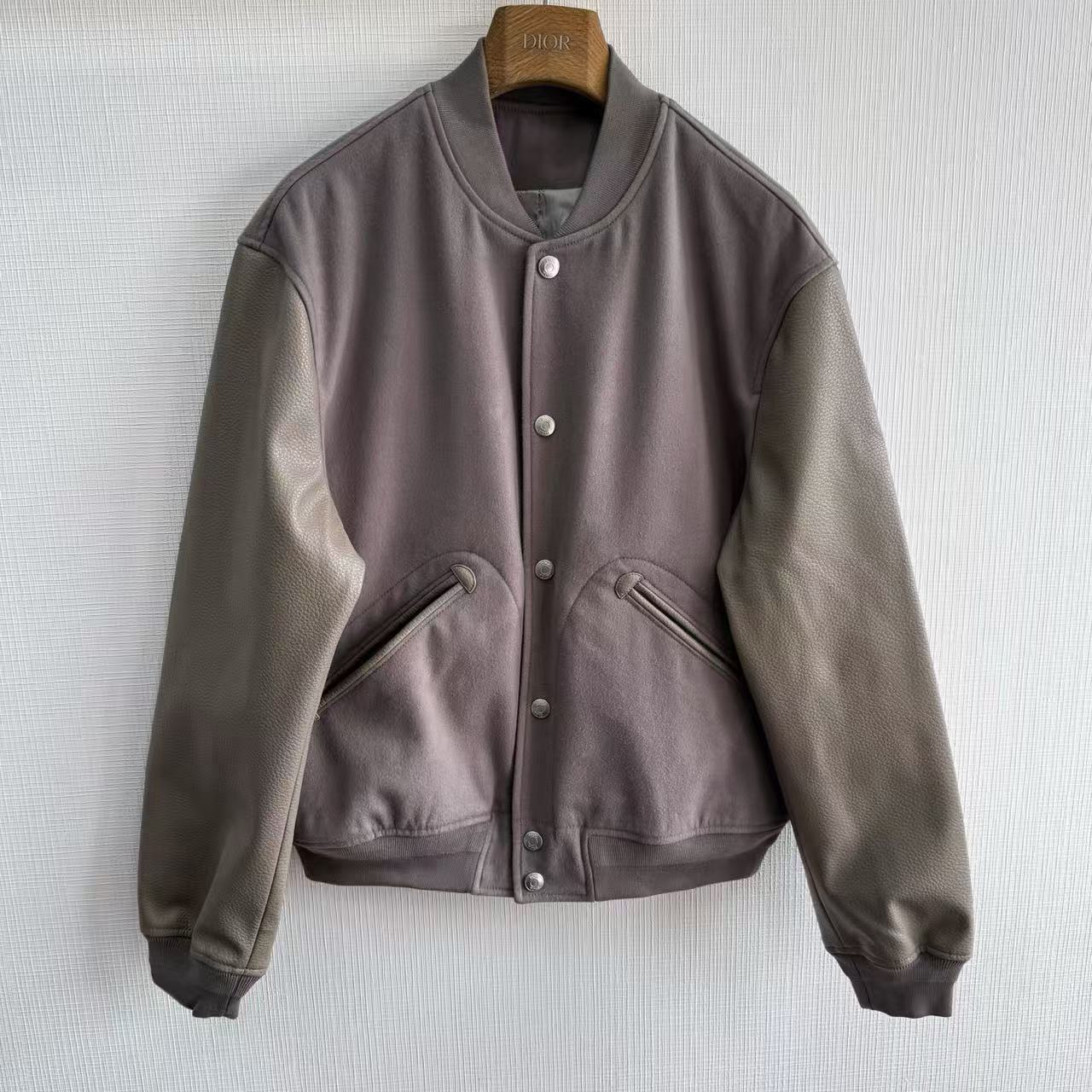 2025秋冬新品 D家 牛皮革拼接復古棒球外套