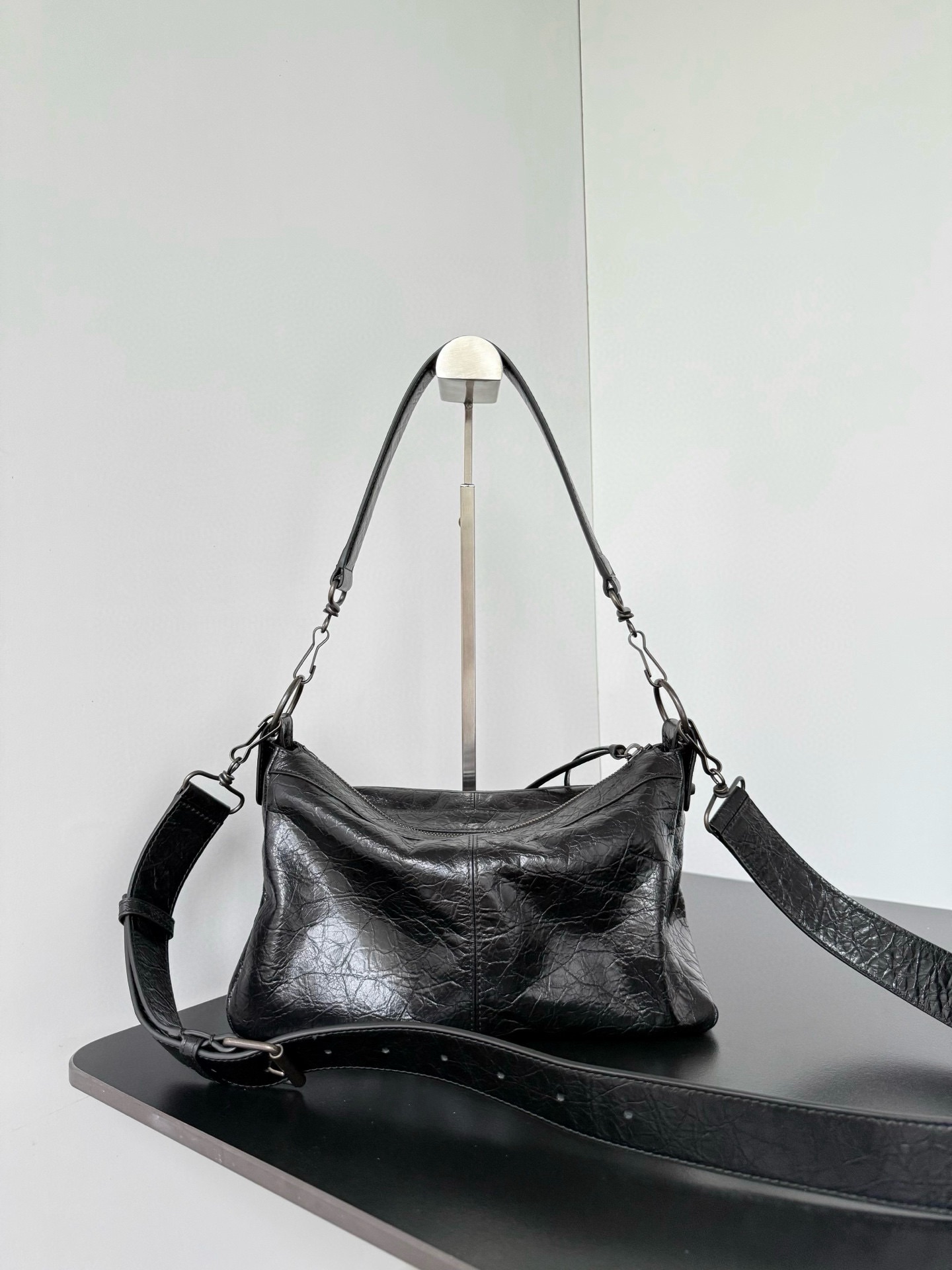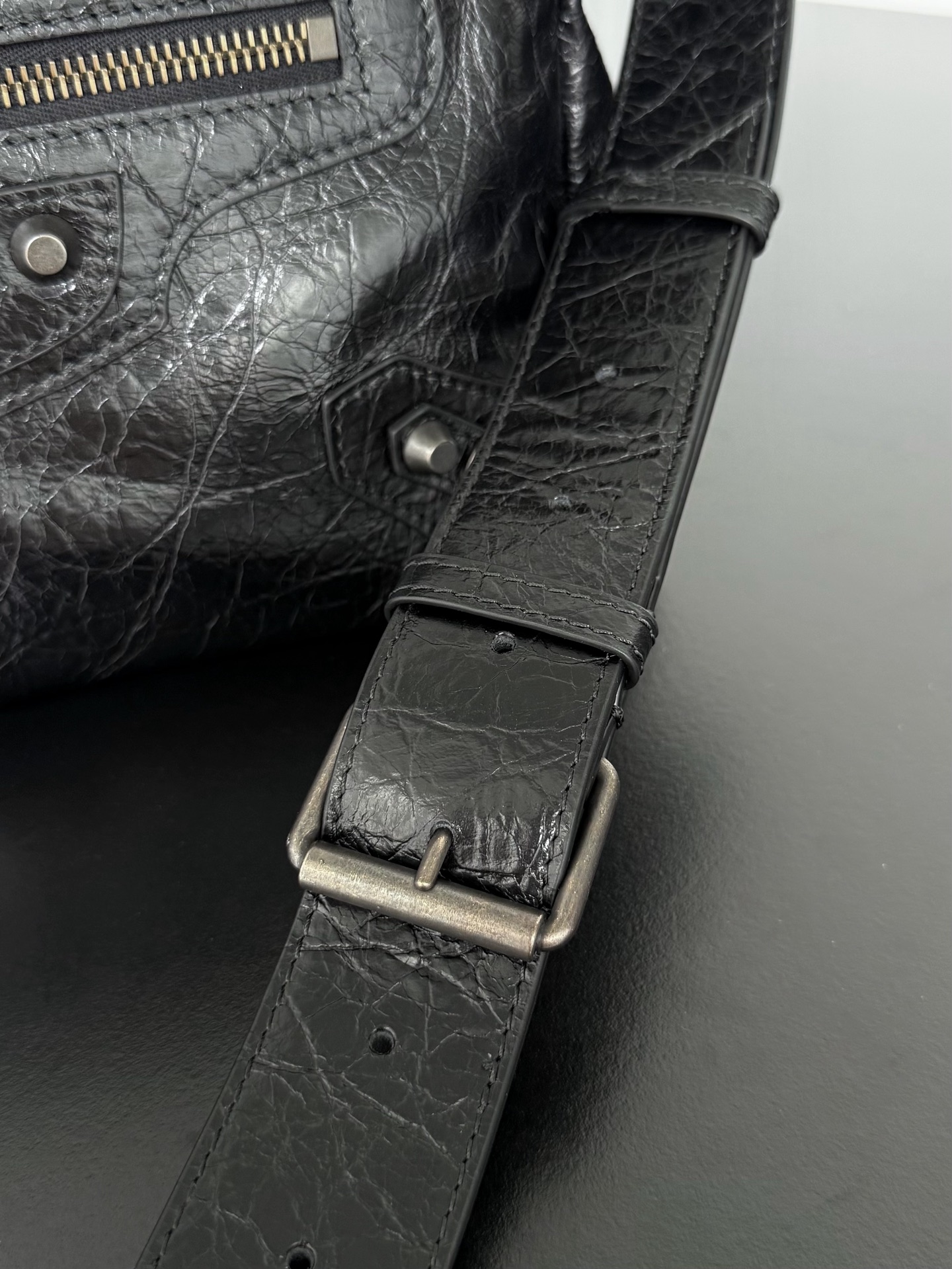 選用招牌的義大利爆裂羊皮,手感柔軟又帶點韌性,皮面自然的裂紋紋理超級有味道。