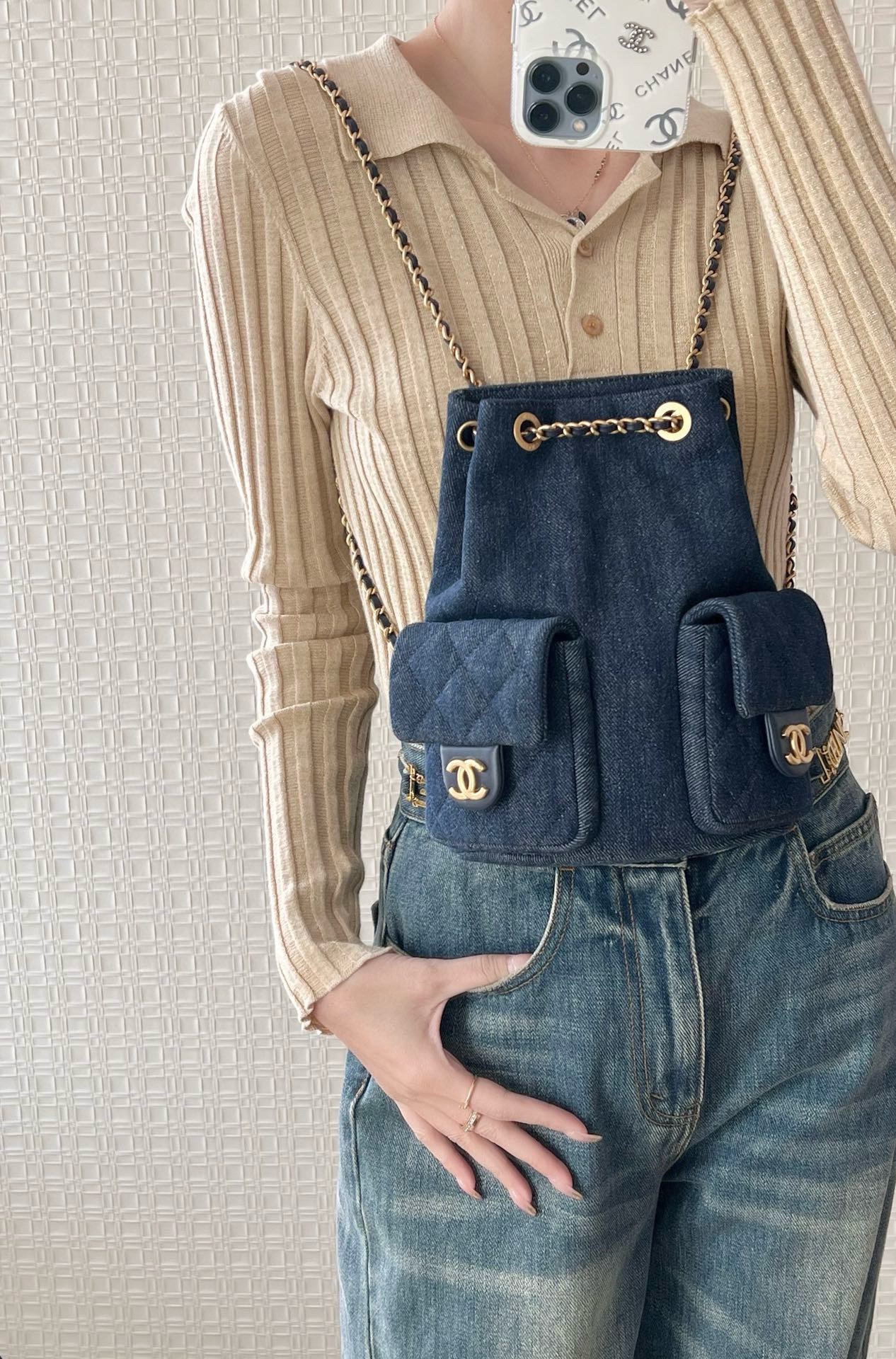 金屬配件: 配備經典的Chanel金屬配件,增添了整體的奢華感。
